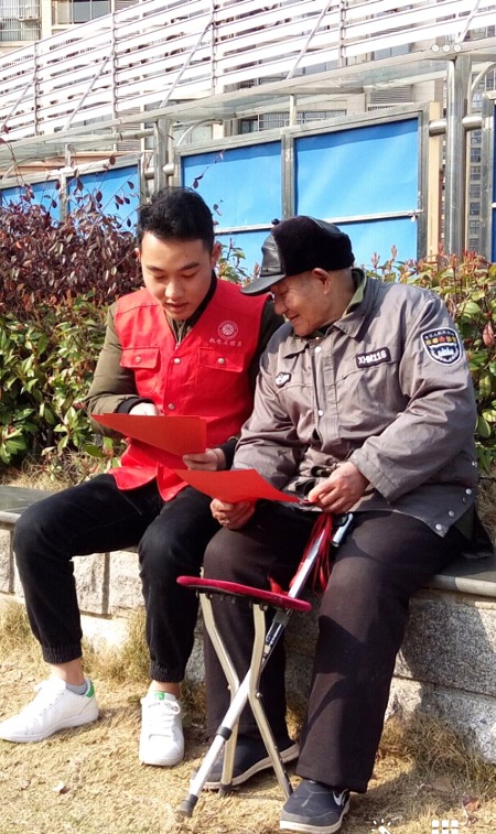 我系志愿者们来到龙蟠社区内向社区的居民们宣传滁州市创建全国文明城市的情况。希望大家能够积极配合,自觉遵守规章制度,做文明人,积极营造文明,和谐,友善的市容环境。并以社会主义核心价值观为基本遵循,从自己做起,以高昂的姿态、文明的力量,吹响创建全国文明城市的号角!