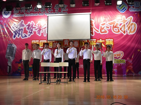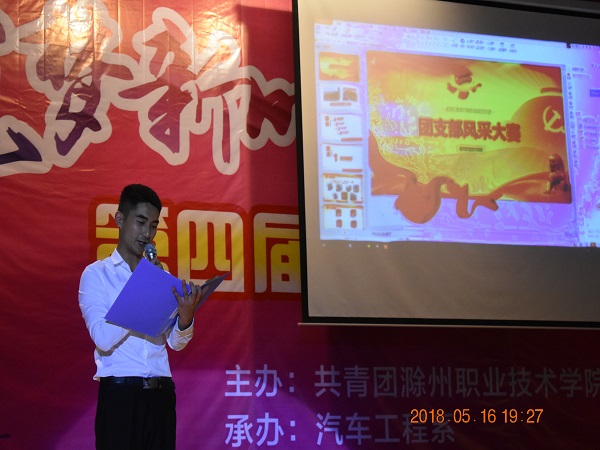 比赛共分为三个环节:知识竞赛、风采展示、才艺展示。今晚的比赛内容是风采展示和才艺展示。17机电(2)班团支书何涛和17机电(4)班团支书王雪晨通过ppt的形式展示各自团支部成立以来的建设成果、特色团日活动等;随后,17机电(2)班团支部通过《少年强》杯子舞展现了团支部的凝聚力;17机电(4)班则以“奋斗的青春最美丽”情景剧获得学生的共鸣。经过三个环节的综合评比17机电(4)班团支部凭借优秀的表现以第一名的成绩获得本次比赛一等奖,17机电(2)班获得了三等奖。