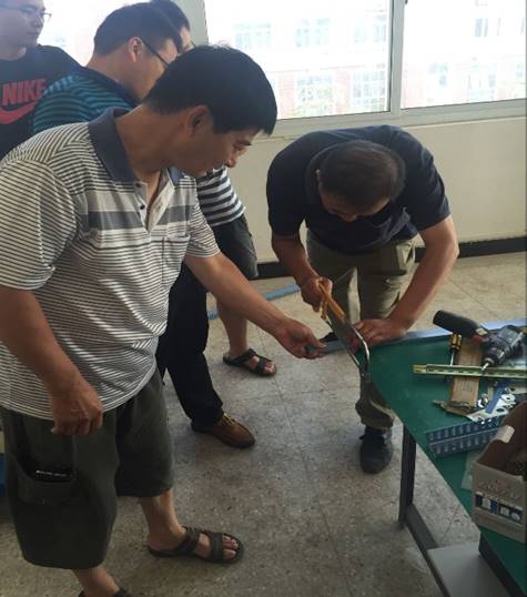 8月19日至8月24日期间,机电工程系12名骨干教师放弃休假时间,发挥不计报酬的奉献精神,在酷暑逼人的夏日里统一行动,从实验台线槽导轨切割、电气元件安装,到电路接线到软件安装调试,全部由老师们自己动手完成。