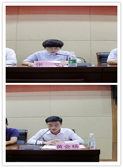(团总支书记张文、学生会主席黄会杨作工作报告)