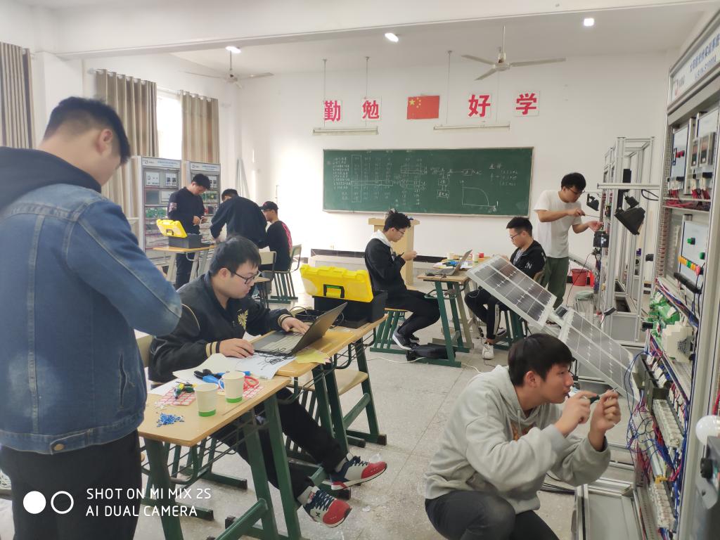 按照学院第四届技能大赛暨第十三届科技创新节活动工作安排,机电工程系于2018年11月2日举办“风光互补发电技术”竞赛,有来自全系9支代表队共27人参赛。“风光 互补发电技术”竞赛面向高职院校光伏发电技术与应用、电气自动化、、机电一体化等相关专业学生,竞赛涉及光伏供电系统安装、PLC程序设计和分析、光伏发电系统调试等技术技能的运用,参赛学生要在2个小时之内完成竞赛操作任务,分析数据、回答问题等工作。