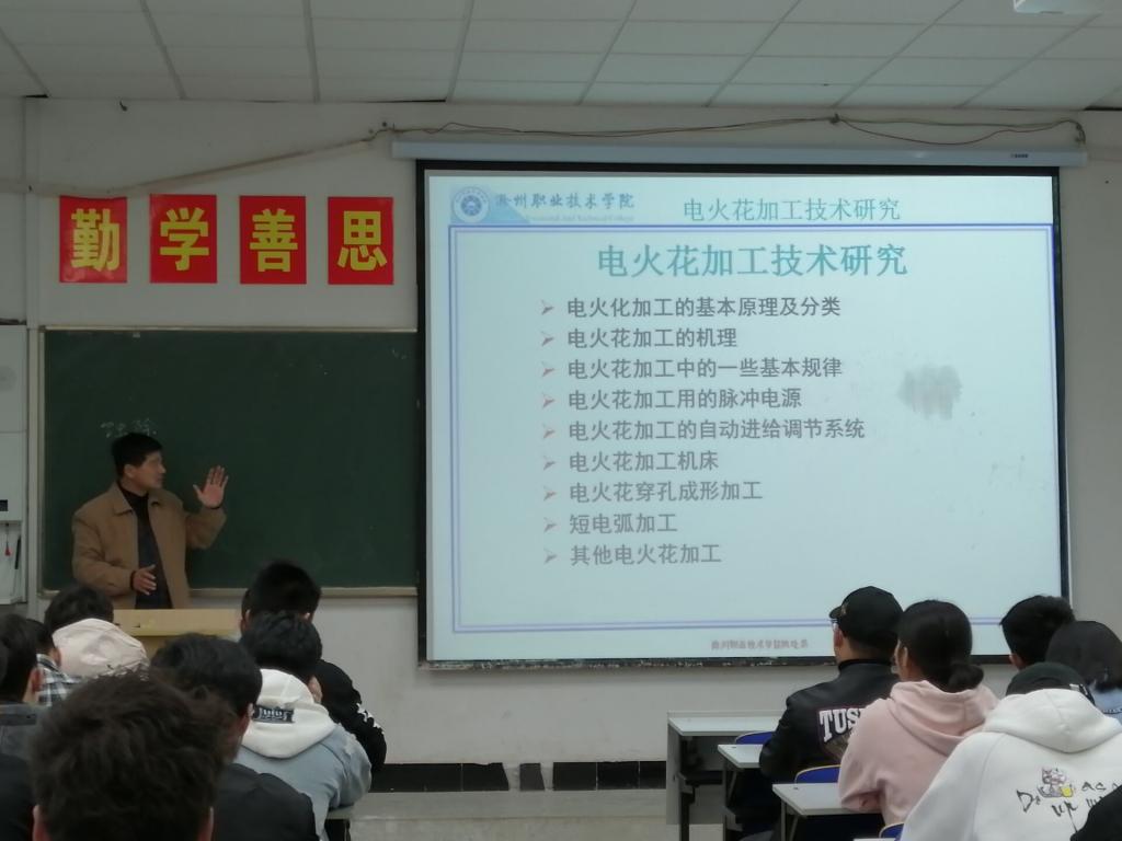 2019年3月20日,机电系杨思国主任在5102多媒体教室举办学术讲座。讲座的题目是:电火花加工技术研究。杨思国主任从电火花加工方法的由来开始,深入分析电火花加工的原理和机理,总结电火花加工的基本规律,并对电火花加工用的脉冲电源、自动进给调节系统、电火花加工机床等内容做一般性知识介绍。在17级学生已学的机械切削加工的基础上,拓展了知识,开阔了眼界。