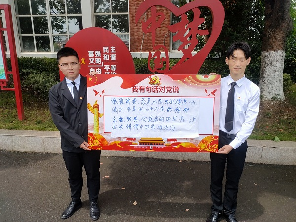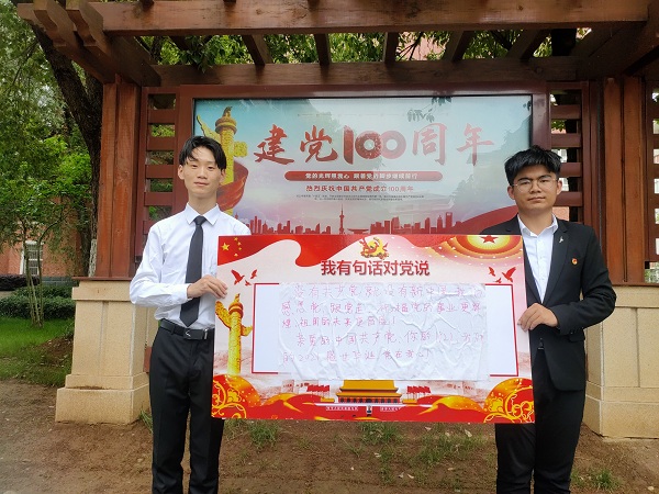 作为新时代中国青年,我们要热爱伟大祖国,要担当时代大任,要勇于砥砺奋斗,用‘中国梦’激扬‘青春梦’,用坚定的信仰和奋斗的青春为中国共产党的百岁生日献礼!