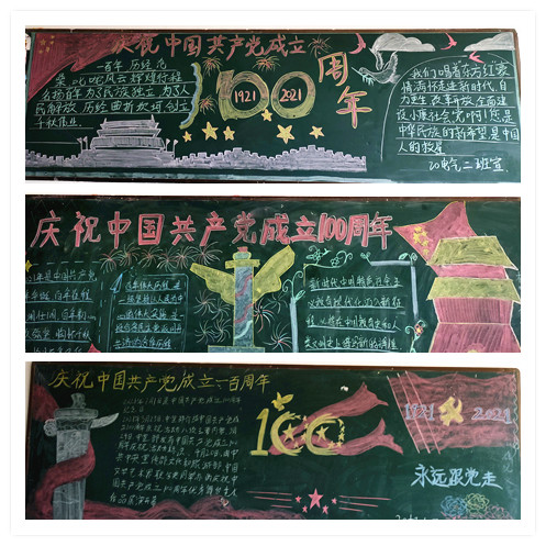 本次主题黑板报绘制作为一场生动的爱国主义教育,充分表达了我院团学青年对党的百年华诞的美好祝愿和对祖国未来的美好祝福。