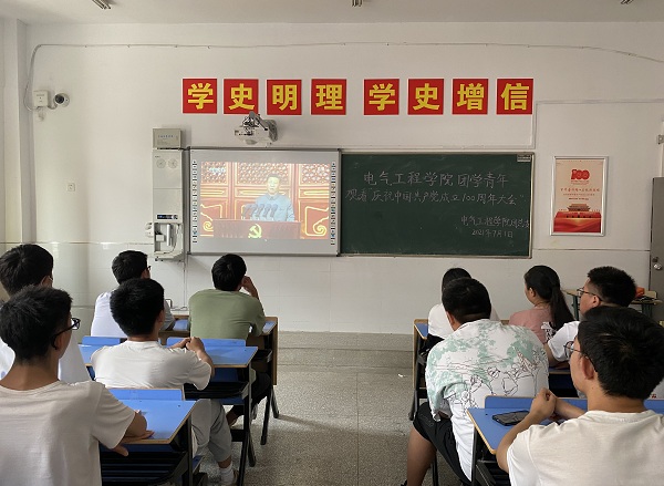 礼赞百年,同心奋进。7月1日上午8点,电气工程学院团总支组织40余名团学青年在致新楼5305教室集中观看“庆祝中国共产党成立100周年大会”盛况,各团支部组织团学青年通过网络等渠道同步进行收看,一起见证这个激动人心的历史时刻。