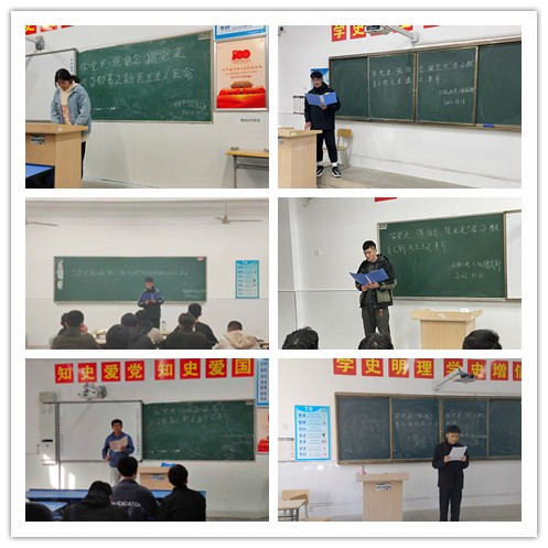 21级各班团支部书记、副书记向支部成员讲述新民主主义革命的历史:新民主主义革命是无产阶级领导的、人民大众的、反对帝国主义、封建主义、官僚资本主义的革命。新民主主义革命的胜利结束了帝国主义、封建主义和官僚资本主义在中国的统治,建立了人民民主专政的新中国,这是中国历史上的伟大转折点,标志着中国社会进入了新的时期。团学青年们认识到新民主主义革命是一部中国共产党带领全体人民实现民族独立、人民解放和走向祖国富强的历史。他们在学习后纷纷表示,要学习革命者的大无畏奋斗精神,赓续共产党人精神血脉,将学习成果转化为前进的动力。