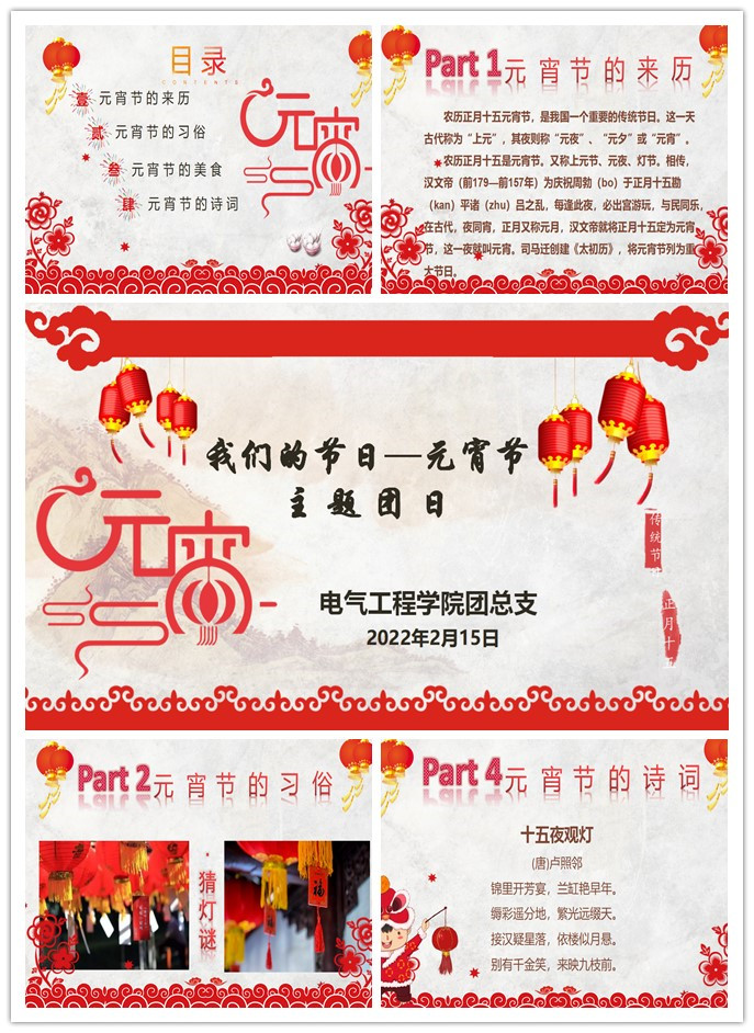 为增强团学青年对中华传统优秀文化的认同感和自豪感,营造欢乐喜庆、文明和谐的节日氛围,电气工程学院团总支于2月15日采用线上+线下相结合的形式开展“我们的节日——元宵节”主题团日活动。