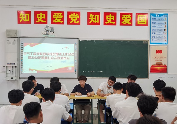 6月6日中午11:30,电气工程学院在致新楼5205教室召开团学组织期末工作会议暨2022年暑期社会实践动员大会,会议由我院团总支书记张文老师主持,辅导员臧铭老师和团体团学干部参会。