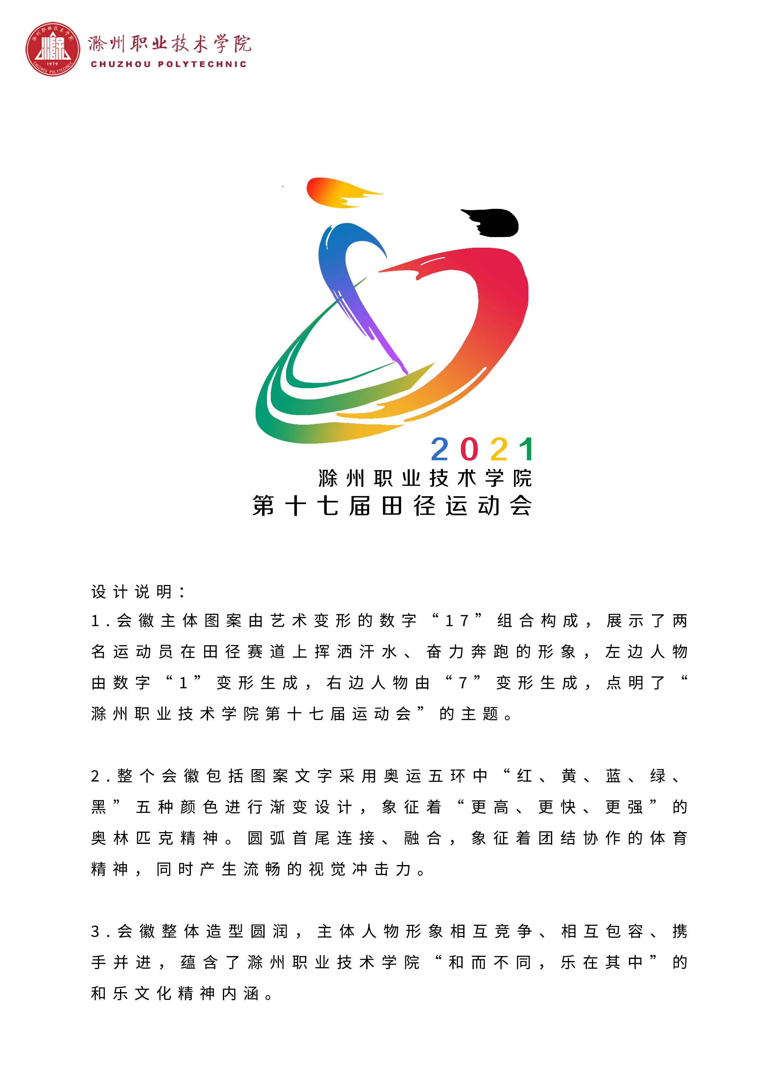由Beat365唯一官方网站主办,传媒与设计学院承办的2021年Beat365唯一官方网站第十七届田径运动会会徽征集活动,自4月7日公告发布以来,吸引了全校师生的踊跃报名参赛。比赛截止到4月20日,经院部汇总、初审,校领导综合评审,最终共评选出6件入围作品,分别获得一、二、三等奖。现将获奖作品公告如下: