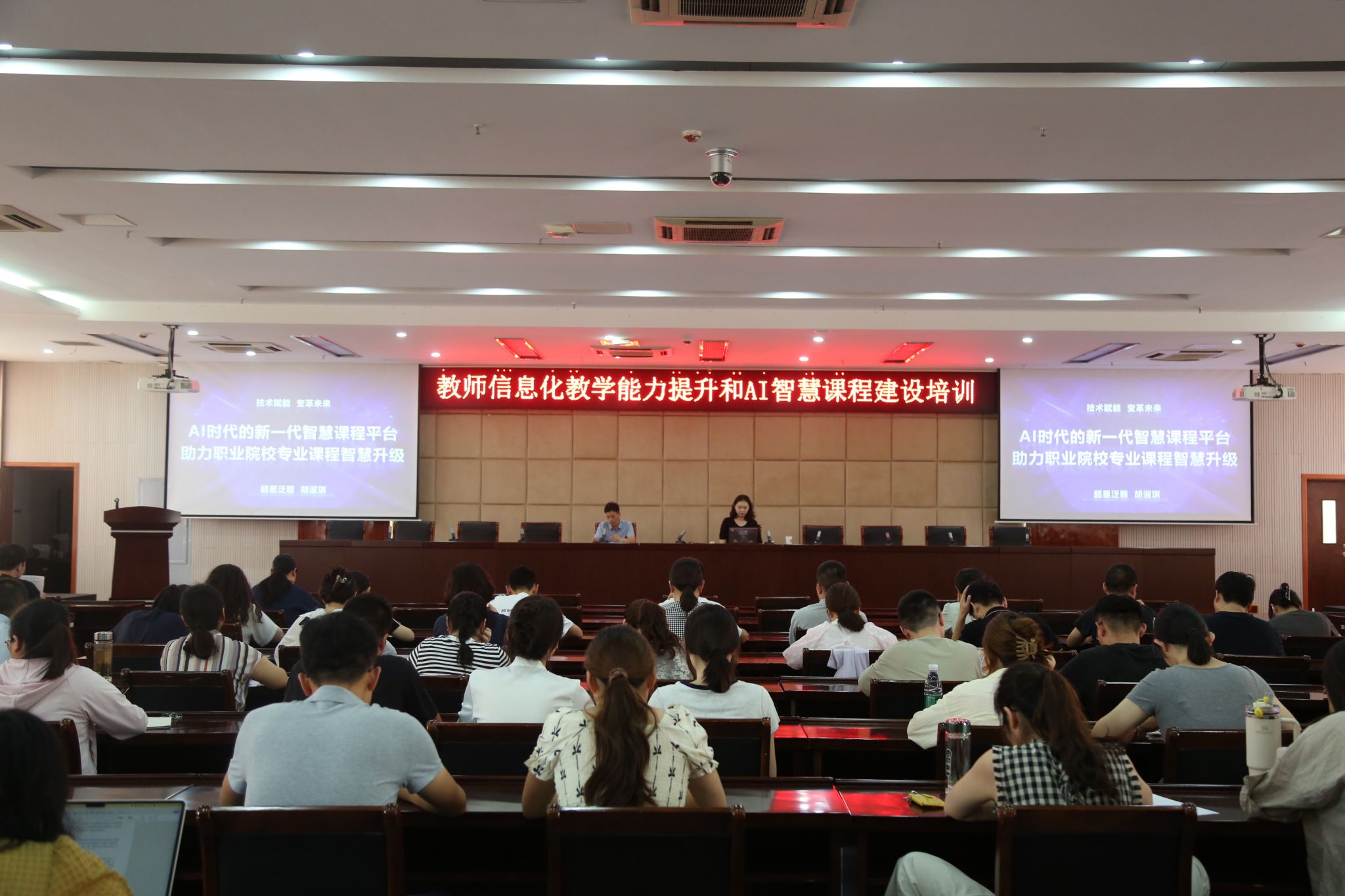 为了进一步提升教师信息化教学水平,推动信息技术与教育教学融合创新,推进Beat365省、校级课程类项目建设,学校于8月30日下午举办教师信息化教学能力提升和AI智慧课程建设培训。各教学院部系(教研室)主任、省校级在研课程类项目负责人、学校近2年新入职教师参加培训。培训由教务处副处长赵卫东主持。