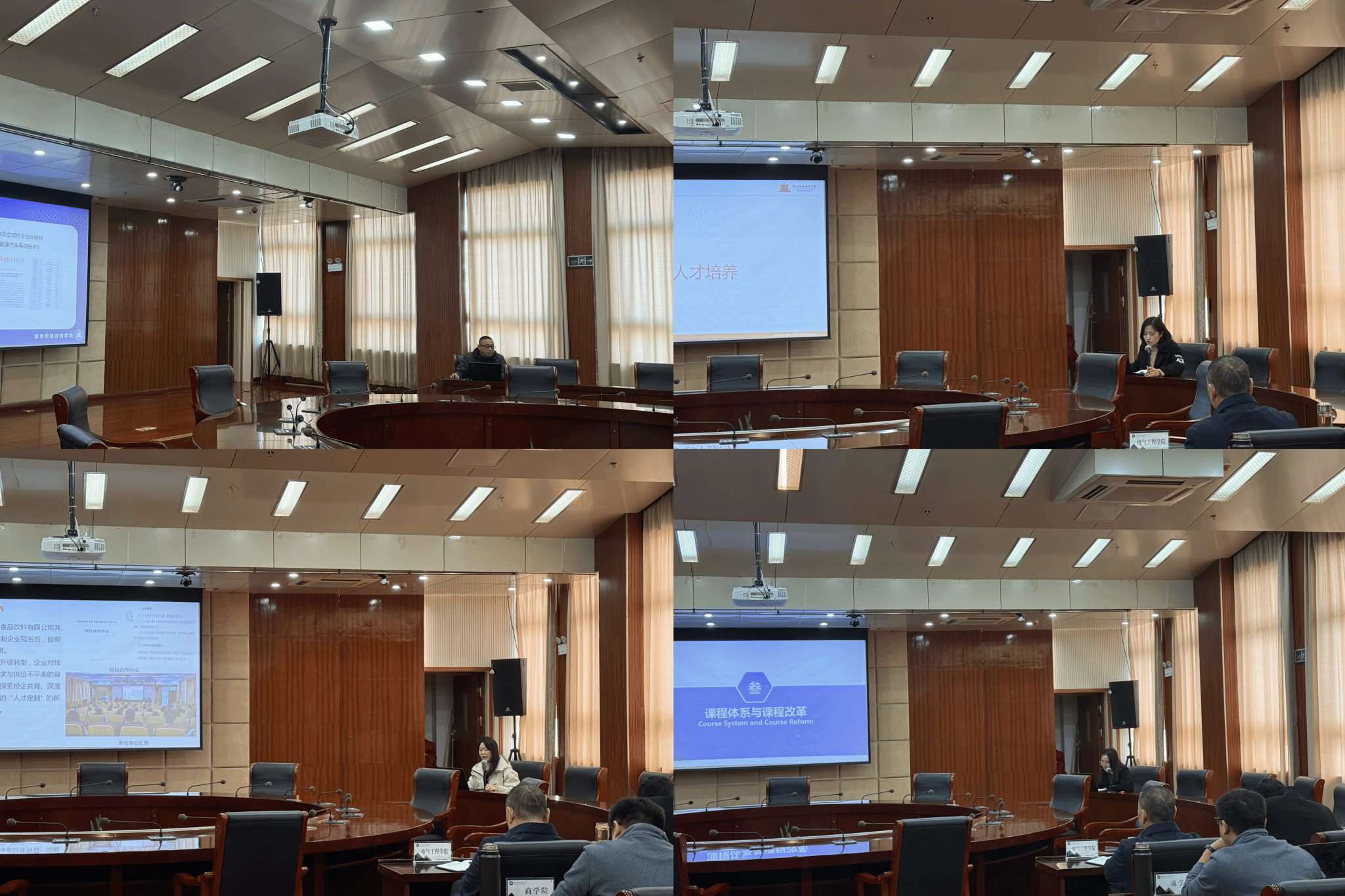 八个教学院部负责人按照专家进校评估的程序和要求,围绕专业设置与人才培养、教学条件、课程体系构建和课程改革、教材管理使用与开发、师资队伍建设、实习实训等方面进行了专业剖析汇报,详细展示了各自专业的建设现状与特色成果。