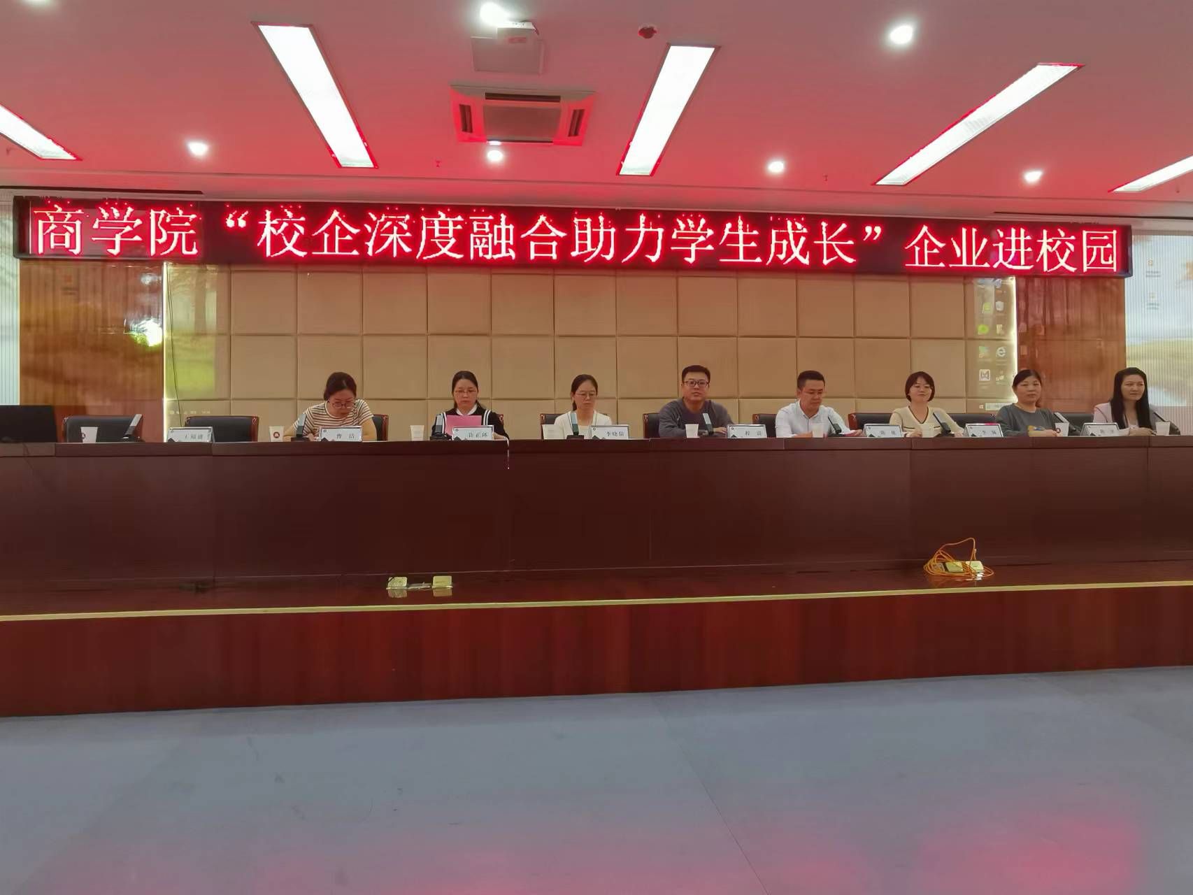 10月18日下午在综合楼502会议室,商学院开展了“校企深度融合、助力学生成长”系列活动暨明光农民丰收节农产品电商直播大赛颁奖仪式,参加本次会议的院企领导有商学院院长程震、党总支副书记李晓辕、副院长许正环、营销外贸系主任曹洁,安徽康佳同创电器有限公司市场部高级经理李佩、培训经理刘玲、招聘经理陈萍,安徽京程信息技术发展有限公司运营总监陈栋。商学院2023级新生及21级毕业生代表也到场参加仪式。