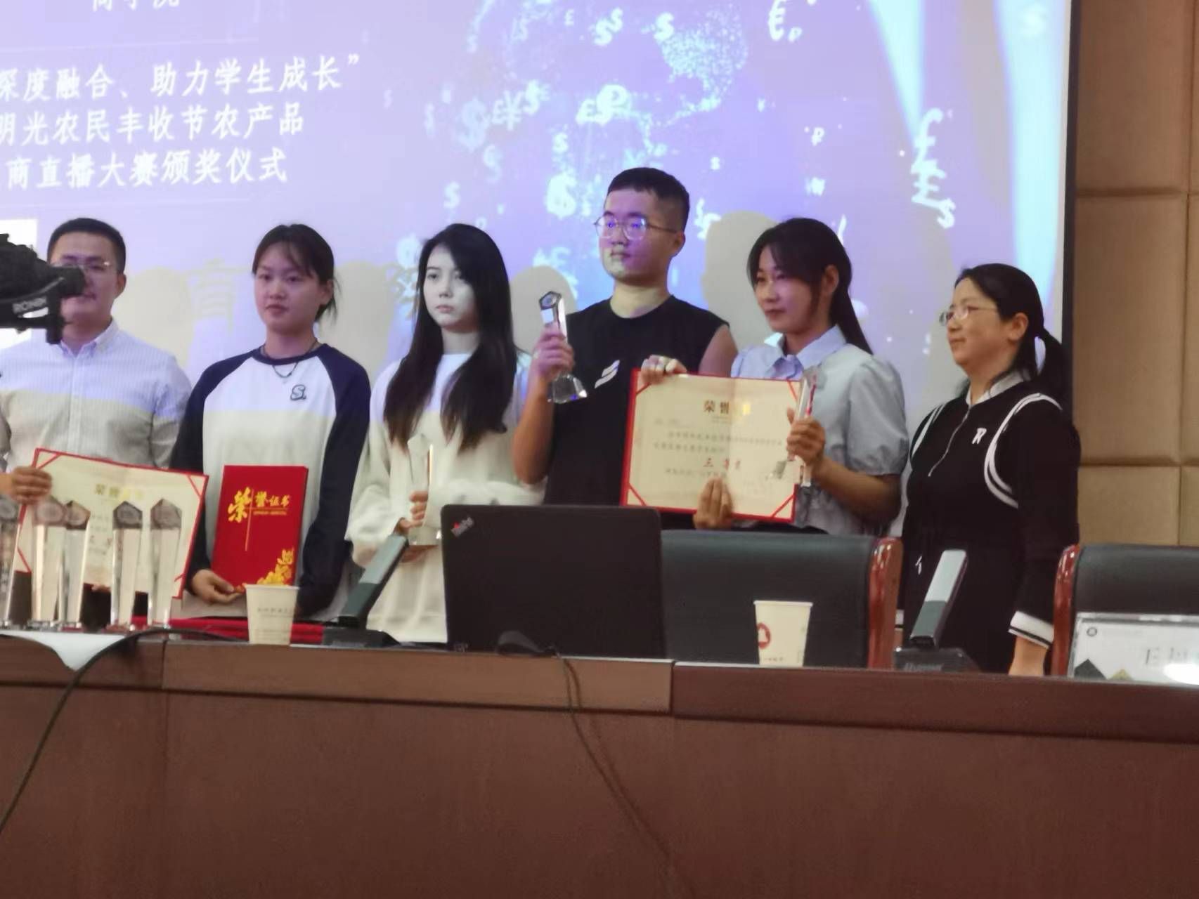 会议开始,程震介绍了商学院的发展概况,以及校企合作的意义,并公布商学院学子在明光农民丰收节电商直播大赛中取得的成绩。校企领导共同为本次电商直播大赛的获奖选手颁奖,并由一等奖获得者时风雨同学作为本次获奖选手代表发表获奖感言。
