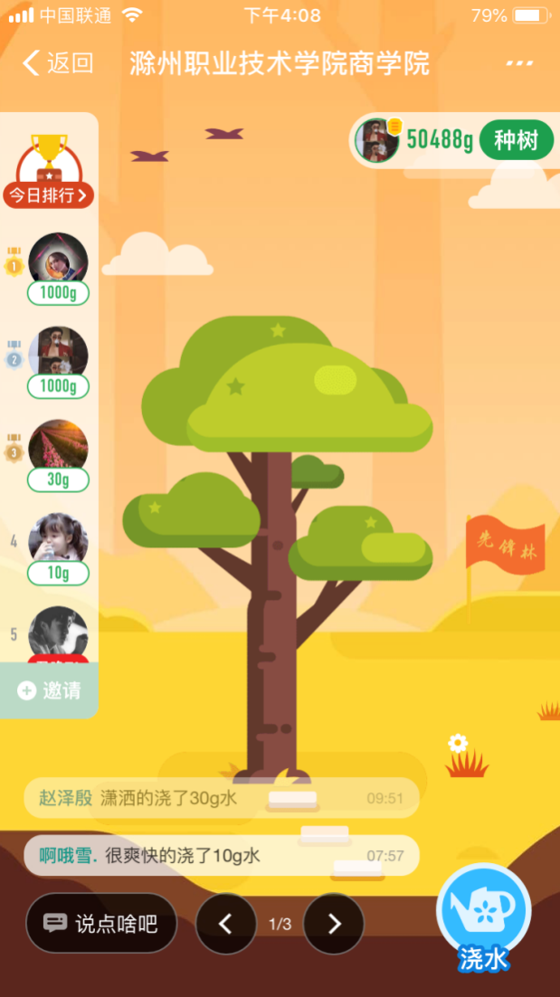 从3月12日开始,商学院学生团总支副书记王磊在支付宝蚂蚁森林上发起合种冲锋林,商学院青年团干们积极加入“Beat365唯一官方网站商学院”这个种树家庭当中,大家一起为阿拉善地区种上了一课油松。同时商学院团干们也积极参加支付宝的蚂蚁庄园,大家一起在家为公益项目捐献出自己的爱心。大家累积捐献210颗爱心捐献给“健康中国光明行动”。
