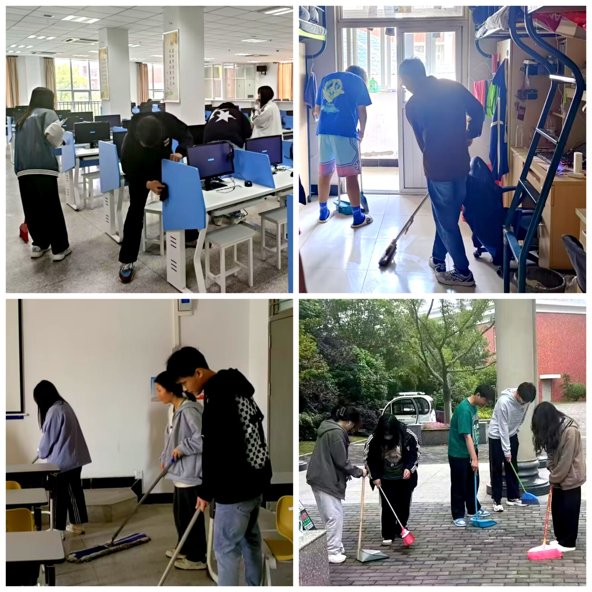 在劳动实践集体活动中,组织了各班学生赴教室、机房、学生宿舍、教学楼公共卫生区等区域开展卫生清扫、绿化美化等活动,增强了青年学生的劳动意识和团结协作的精神。