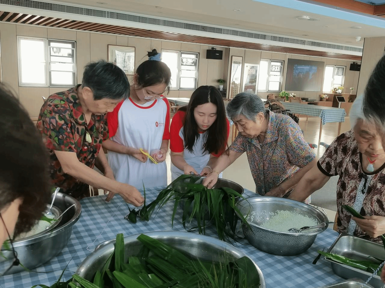 下午14:00,志愿者们来到丰华养老中心,志愿者们分工明确,互相配合,有的陪老人聊天、有的陪老人下棋、有的陪老人打麻将、有的和老人一起包粽子,同时送去牛奶、面包等慰问品。志愿者们用实际行动传递了新时代青年人的温暖和关怀,让老人们感受到节日的温馨。