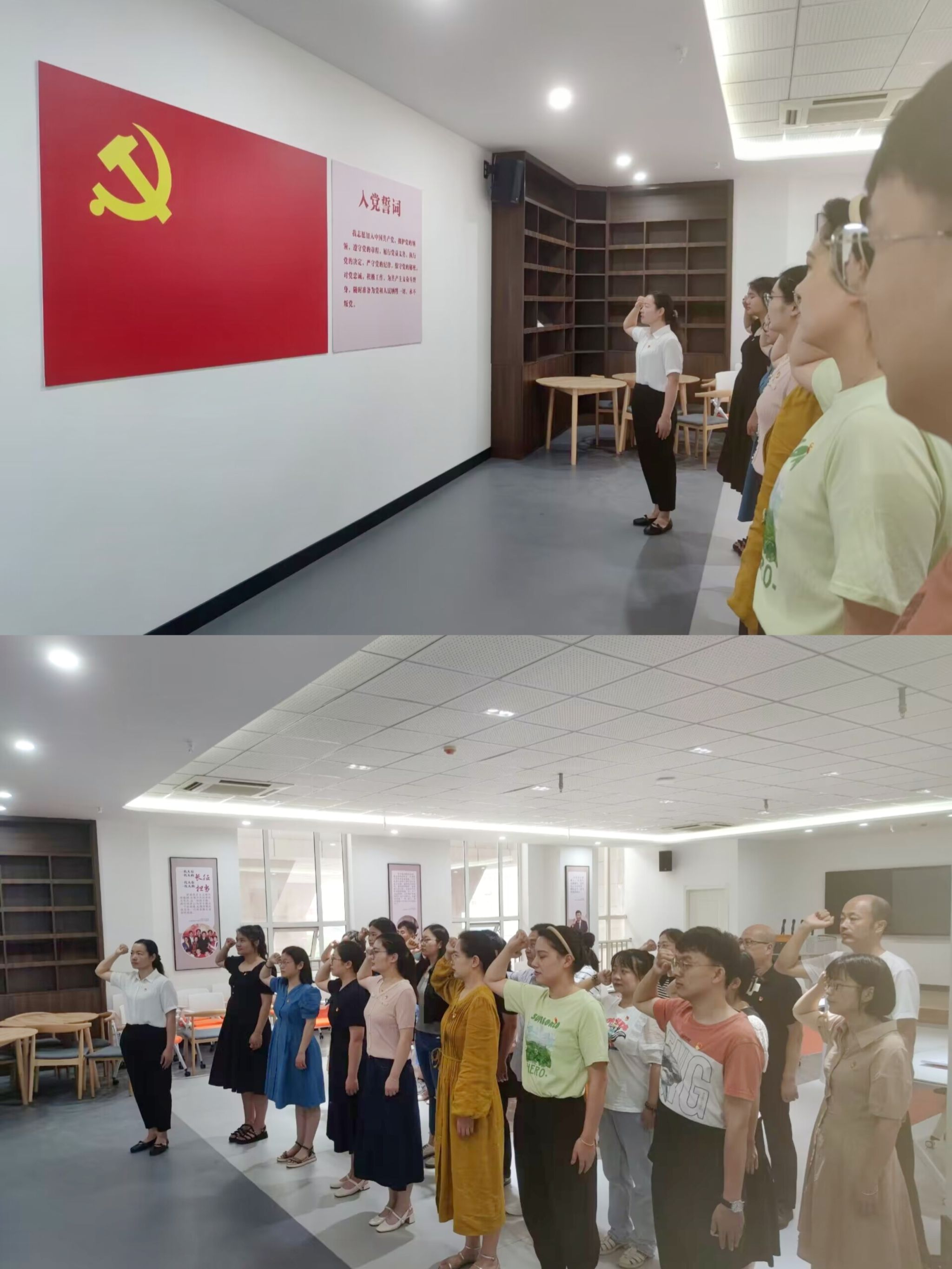 “我志愿加入中国共产党,拥护党的纲领,遵守党的章程,履行党员义务,执行党的决定……”全体党员教师在马克思主义学院党总支副书记陈琴的带领下面对鲜红的党旗重温了入党誓词,铿锵有力的誓词让在场每个人都深受心灵的震撼和洗礼,汇聚起矢志不渝跟党走的磅礴力量。