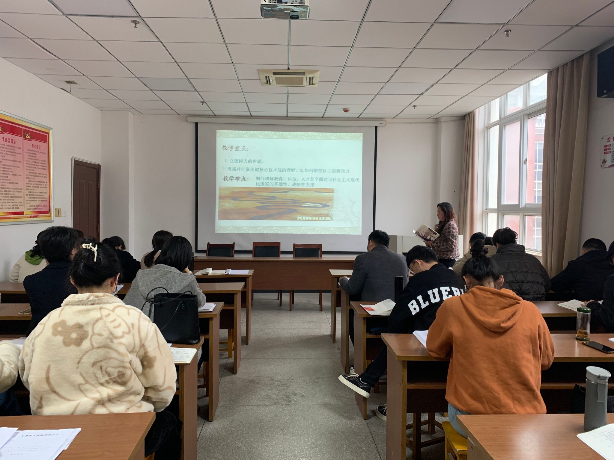 3月27日,根据教研室工作进度和集体备课安排,马克思主义学院在318会议室召开本学期第五次集体备课会。会议由马克思主义学院副院长张家莉主持,全体专兼职思政课教师参加。