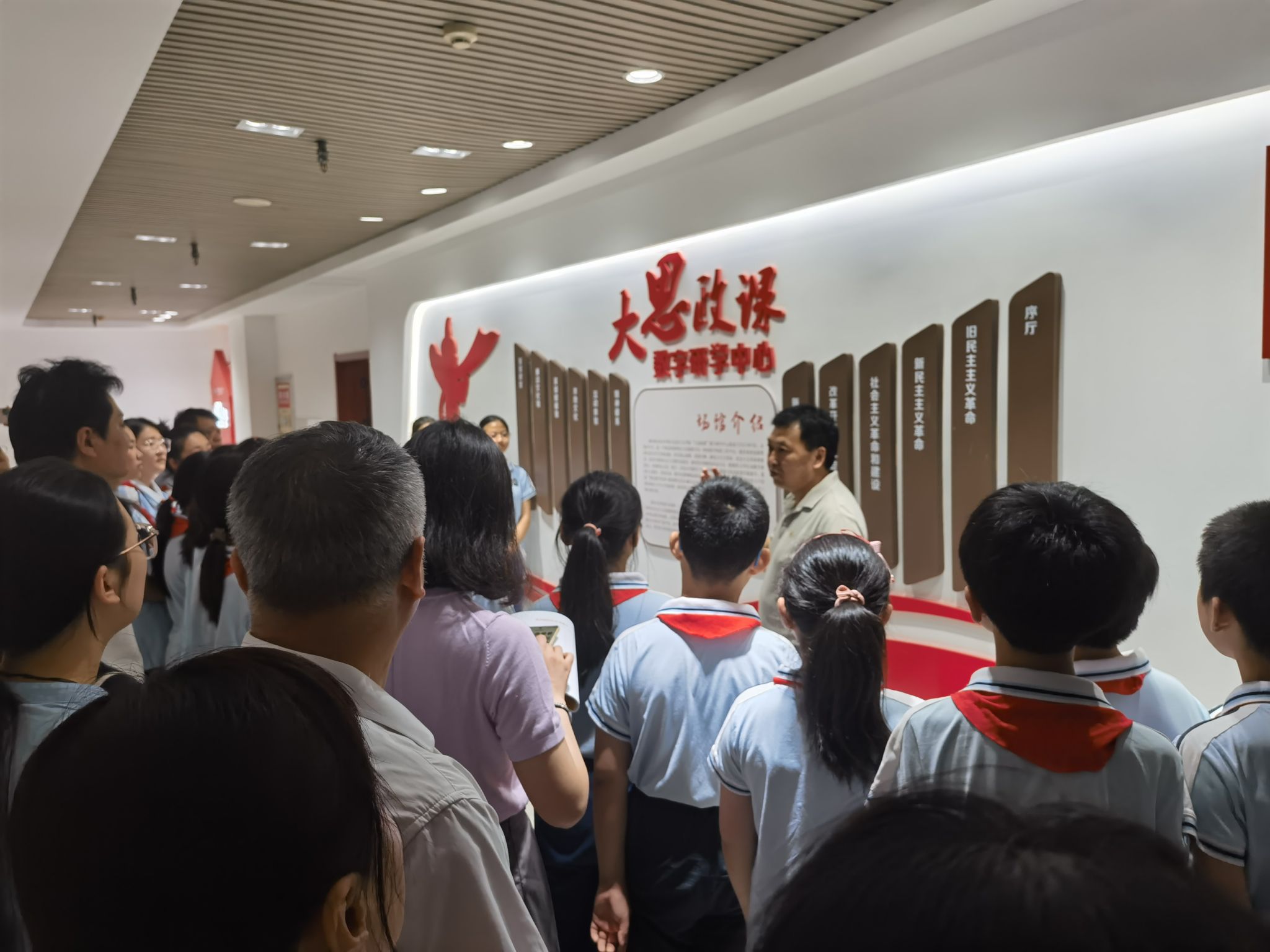 5月21日,滁州市紫薇小学党员、团员和少先队员代表一行约50人来到Beat365“大思政课”数字研学中心参观交流,马克思主义学院党总支书记、院长孔金热情接待并作介绍解说。