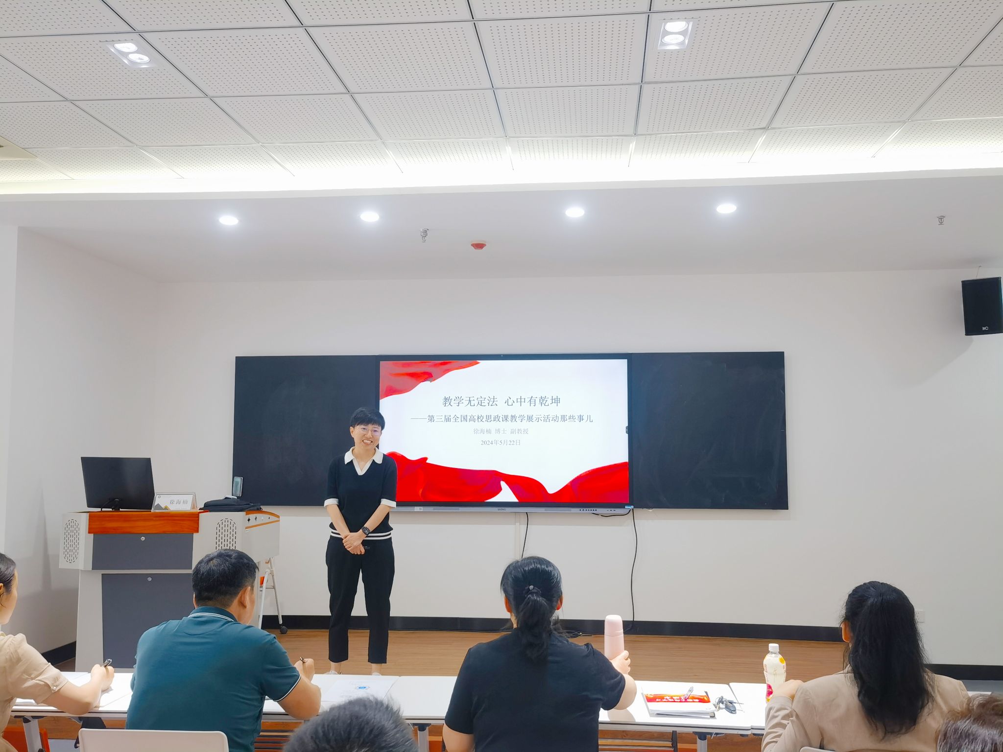 “思政课的本质是讲道理,要注重方式方法,把道理讲深、讲透、讲活,老师要用心教,学生要用心悟,达到沟通心灵、启智润心、激扬斗志。”徐海楠副教授围绕“教学无定法 心中有乾坤”的主题,从读题、破题、点题三个方面点明了全国思政课教学展示三届比赛要求的“变”与“不变”,就高校思政课程特点作了总体设想,并以自己日常教学中教学准备情况做了案例分析,以“四问”的形式阐释了将教材体系转化为教学体系、将教材语言转化为教学语言的方式方法,即如何进行教学展示,以及如何在思政课教学展示活动中获得佳绩。讲授过程中,她扎实的理论功底、平实亲切的语言、功在平时的磨练、丰富的大赛经验,深深地激发了教师们上好思政课的信心和自觉。徐海楠副教授结合思政类相关教学展示活动的发展趋势,为聆听讲座的教师们提供了宝贵的建议,老师们受益匪浅。
