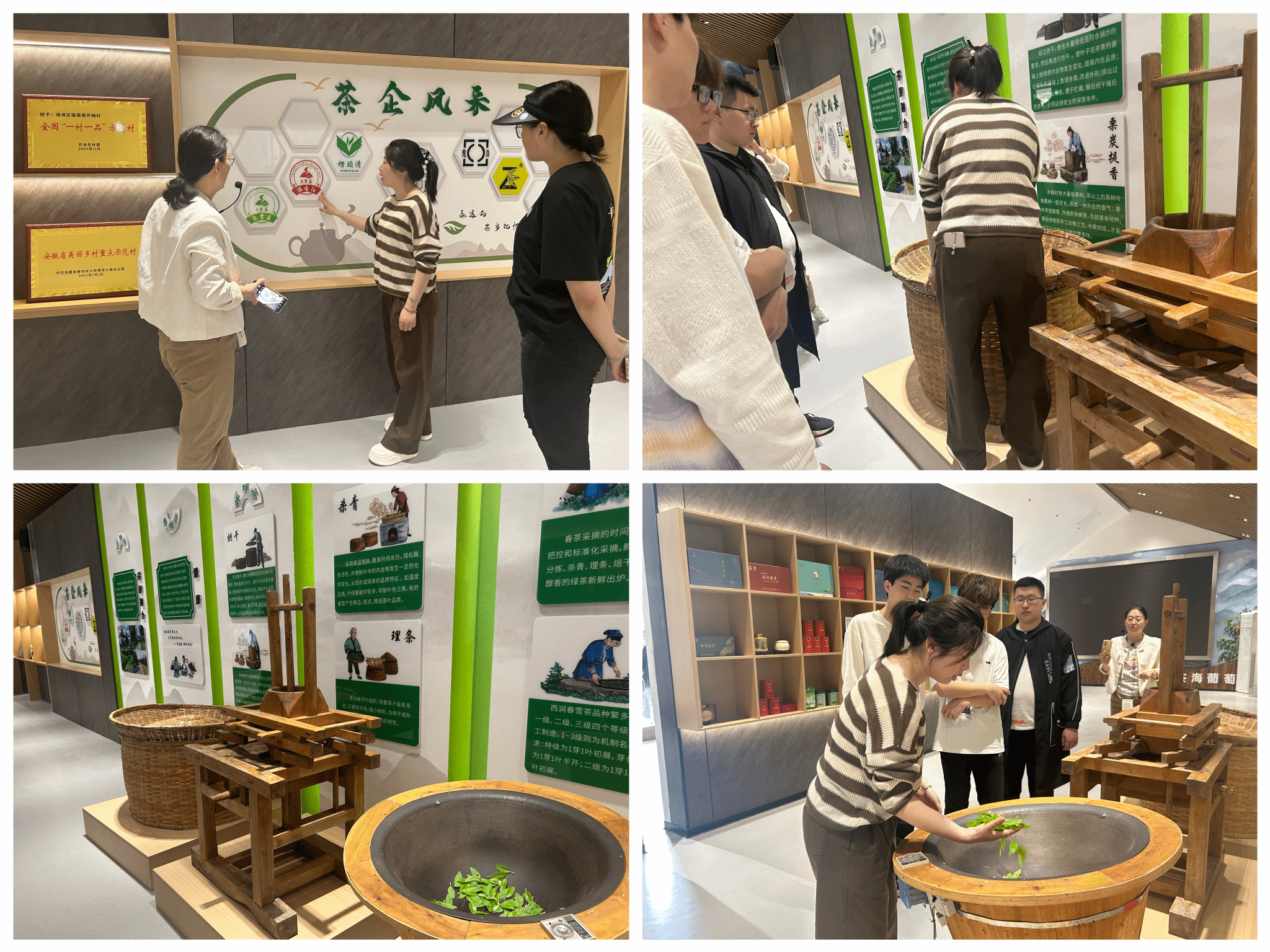 第三站来到了井楠村茶文化馆。井楠村是皖东闻名的茶乡,茶文化历史悠久,以茶而兴。近几年来,井楠村不断探索挖掘本地特色茶文化,将茶文化、茶产业、茶科技融合统筹发展,打造出南谯特色“茶名片”。工作人员王珊详细介绍了井楠村坚持“茶区变景区、茶园变公园、茶山变金山”的发展路径,茶叶生产成为本地的特色支柱产业,使全村实现了“从一片叶子,到孕育一个茶村、成就一个产业、富裕一方百姓”的跨越式发展。此外,当地不仅将乡村振兴与“茶产业”有机融合,还创造性地将“茶”文化引入到基层治理工作中,探索创新‘一杯茶’工作法,形成了茶乡基层治理的新“枫”景。