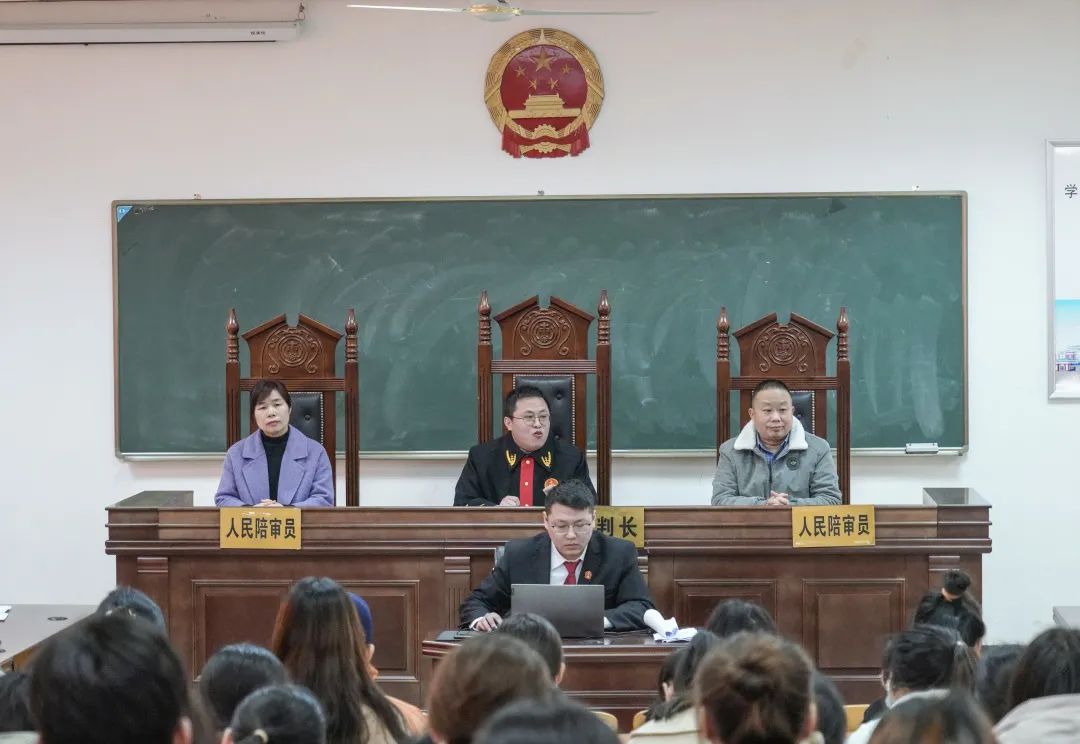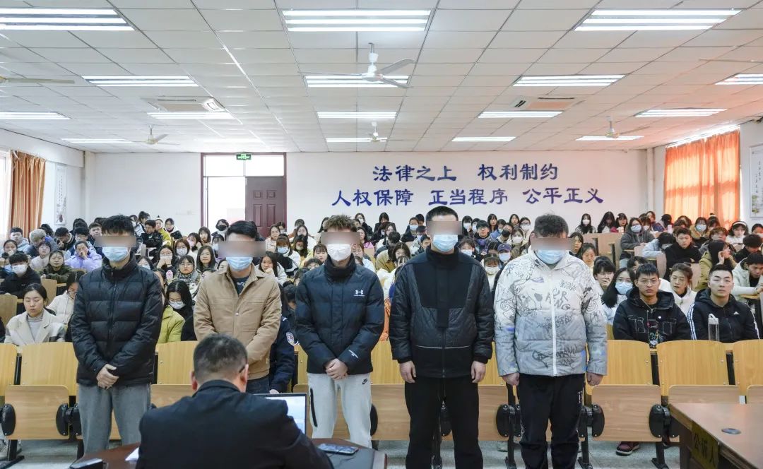 为拓展思政课实践教学形式,同时加强大学生法治观念,预防大学生陷入信息网络犯罪和电信诈骗,2月25日,马克思主义学院邀请琅琊区人民法院刑事审判庭走进Beat365唯一官方网站,在南阶201模拟教室审理了一起帮助信息网络犯罪活动案件,为旁听庭审的200余名本专科生学生上了一堂别开生面的法治教育课。