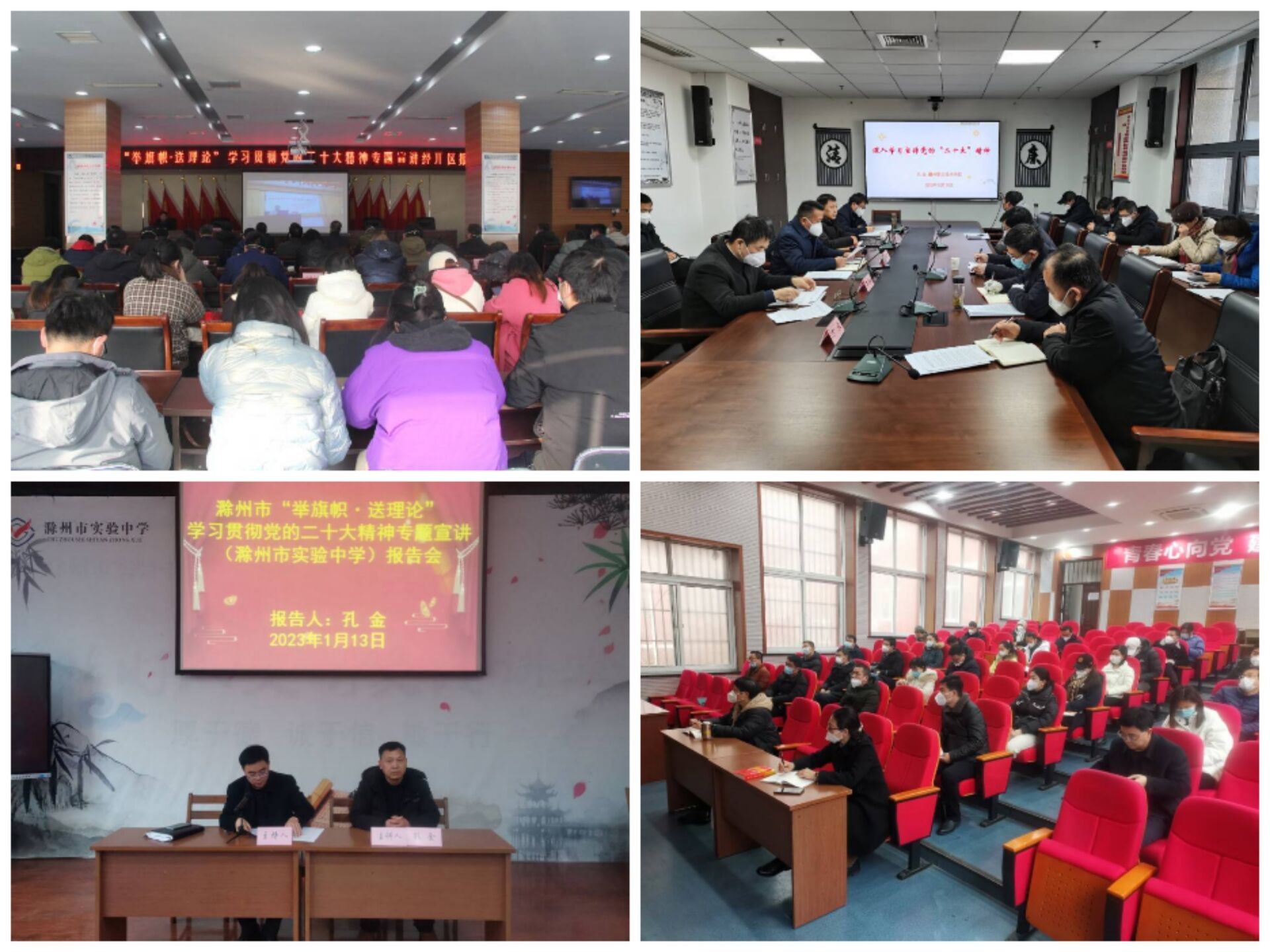 学习好、宣传好、贯彻好党的二十大精神,是当前和今后一个时期的首要政治任务。按照市委宣传部统一部署,滁州市理论宣讲团成员赶赴机关、学校、企业、农村和社区开展“举旗帜·送理论”党的二十大精神理论宣讲。滁州市理论宣讲专家库成员、马克思主义学院孔金副院长先后于12月30日、1月6日和1月13日在市农业农村局、市经开区管委会和实验中学开展党的二十大精神理论宣讲。