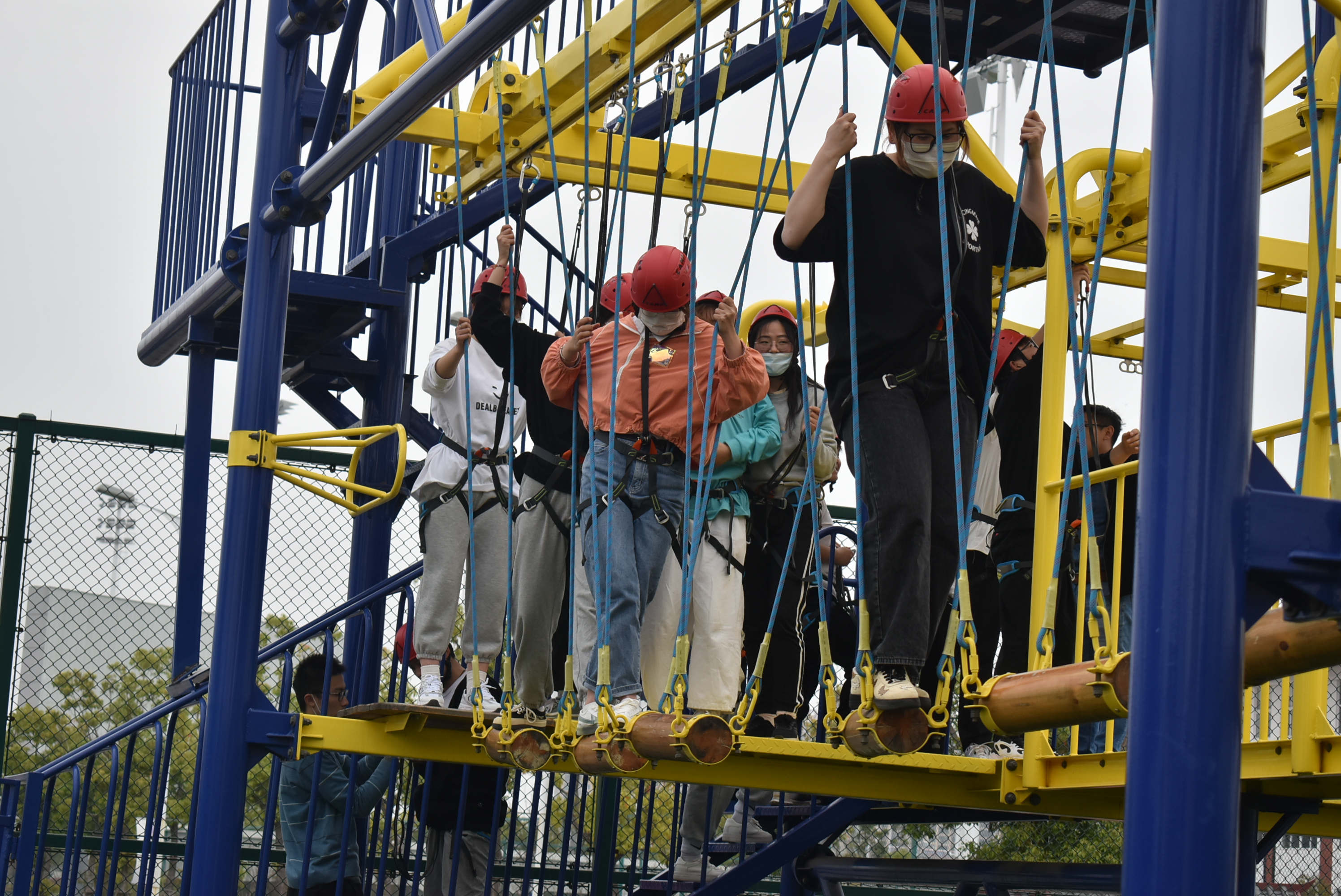 活动开始前,老师带着学生们一起做热身运动,用欢乐舞蹈的方式在热身的同时也迅速提升游戏氛围。而后老师带领同学们开始了本次主题素质拓展活动。本次活动以小组为单位,共设置了“破冰”、“挑战六十秒”、“老虎猎人枪”、“找朋友”、“信任背摔”五个环节,在游戏过程中同学们纷纷投入饱满的热情,各小组的凝聚力在欢声笑语中得到了提升。最后在体育老师的带领下,同学们穿戴好安全防护装备参与“高空探险”,突破自己的极限,为此次活动带来一个有趣刺激的结尾。
