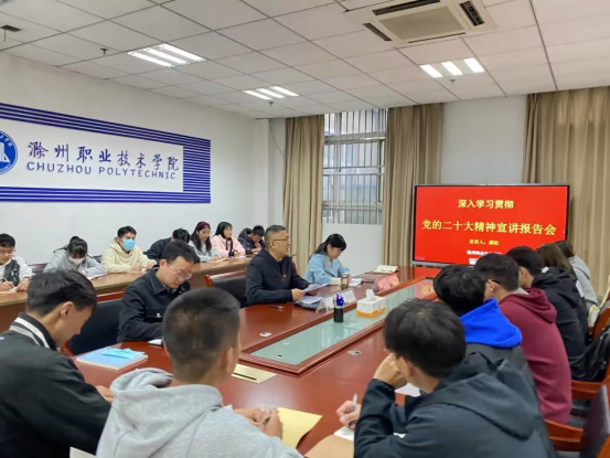 11月16日,校校长助理、招生就业处处长穆松到本科教育党支部宣讲党的二十大精神,本科教育党支部书记薛天飞,辅导员余道奎、杨付春和本科教育学生代表参加宣讲报告会,报告会由薛天飞主持。