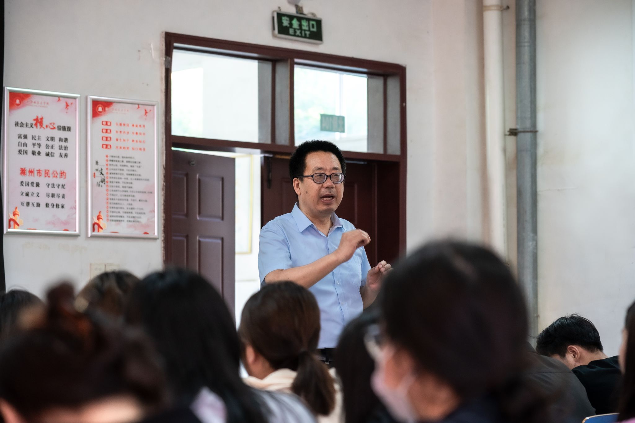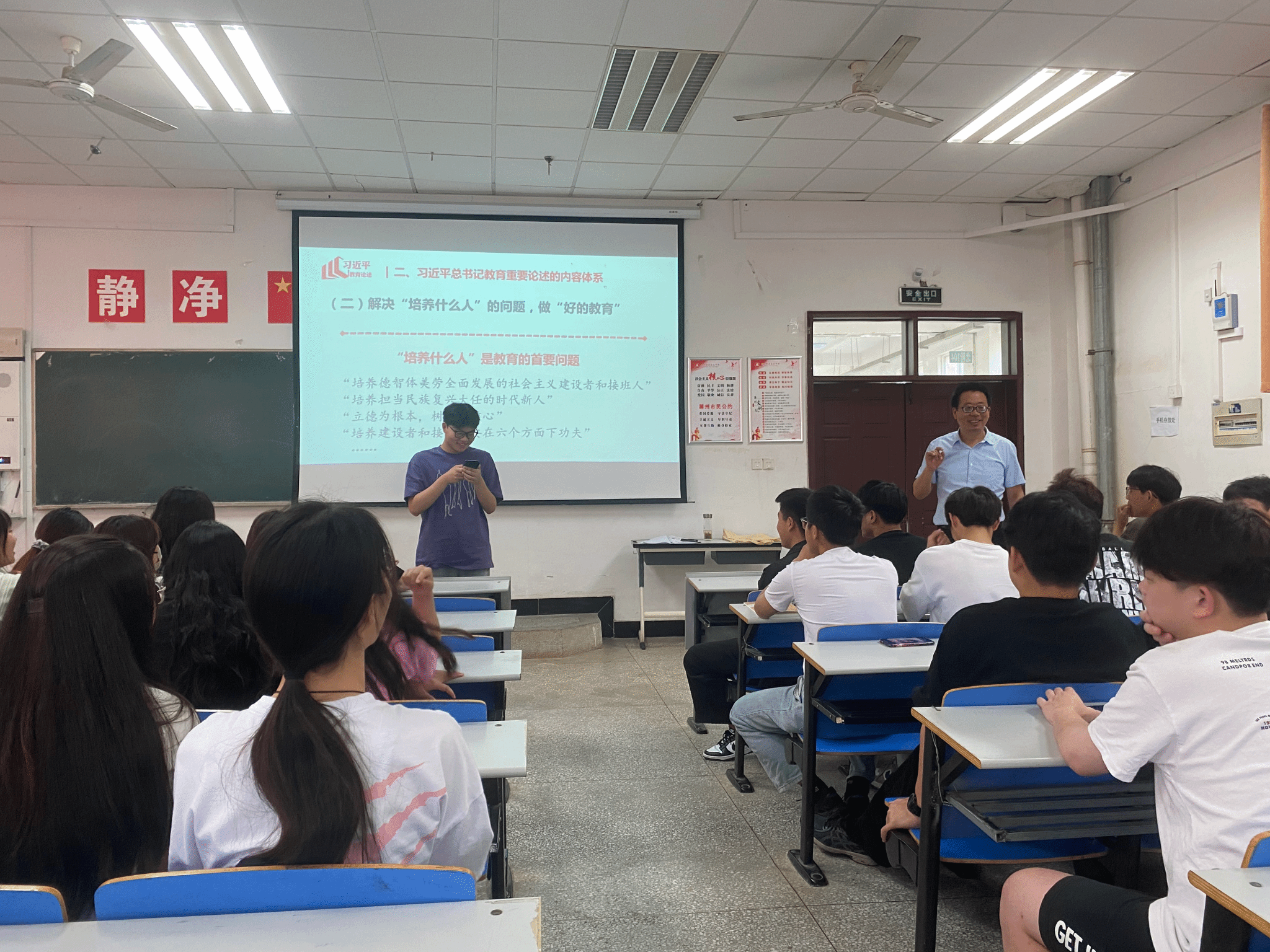 5月31日上午,校党委委员李平权在北阶104教室为我院21传播策划专业学生讲授形势与政策课,带领学生深入学习领会党的二十大精神和习近平总书记关于教育的重要论述。