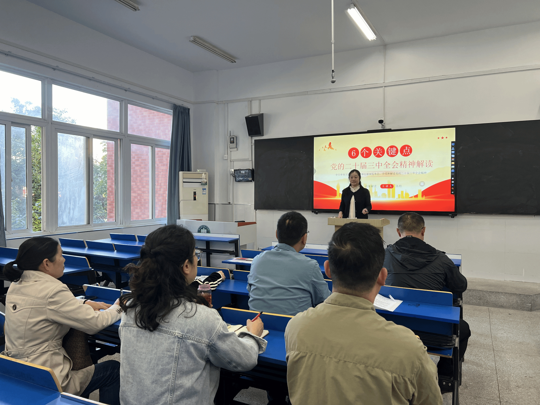 本次党课主题是:6个关键点——党的二十届三中全会精神权威解读。支部书记陈艳详细给大家从六个方面介绍和解读了党的二十届三中全会精神。
