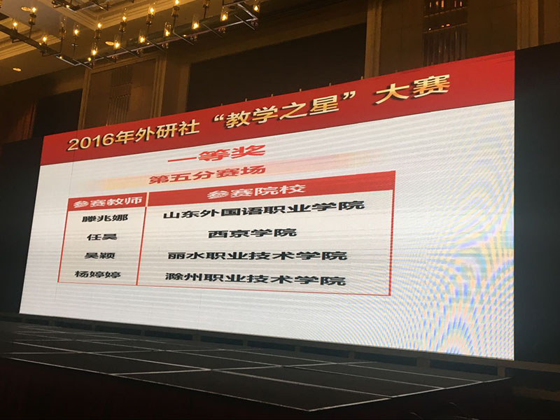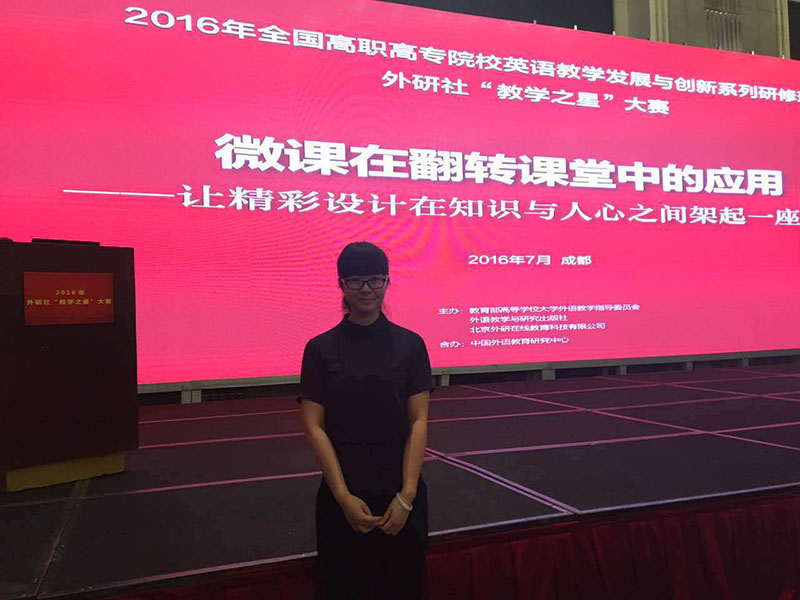 2016年7月15日基础部外语教研室杨婷婷老师参加了在四川成都举行的第四届外研社“教学之星”大赛,喜获复赛一等奖。本次大赛由教育部高等学校大学外语教学指导委员会、教育部高等学校英语专业教学指导分委员会、北京外国语大学中国外语教育研究中心和外语教学与研究出版社联合主办。大赛是面向全国高等院校外语教师的大型赛事,旨在切实提升高校外语教学质量。以“让精彩设计在知识和人心之间架起一座桥梁”这一理念为指导,鼓励教师优化教学模式,面对当代大学生,在课堂教学实践中融入科学合理的教学设计,从而提升教学效率与效果。