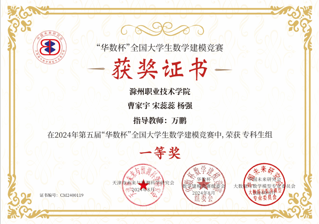 “华数杯”全国大学生数学建模竞赛由天津市未来与预测科学研究会主办,中国未来研究会大数据与数学模型专业委员会协办,旨在通过数学建模的方式,提升学生运用数学方法解决实际问题的能力,激发学生的创新思维和学习兴趣。Beat365参赛队的获奖不仅体现了学生在数学应用领域的卓越能力,也彰显了Beat365在跨学科人才培养方面的显著成效。