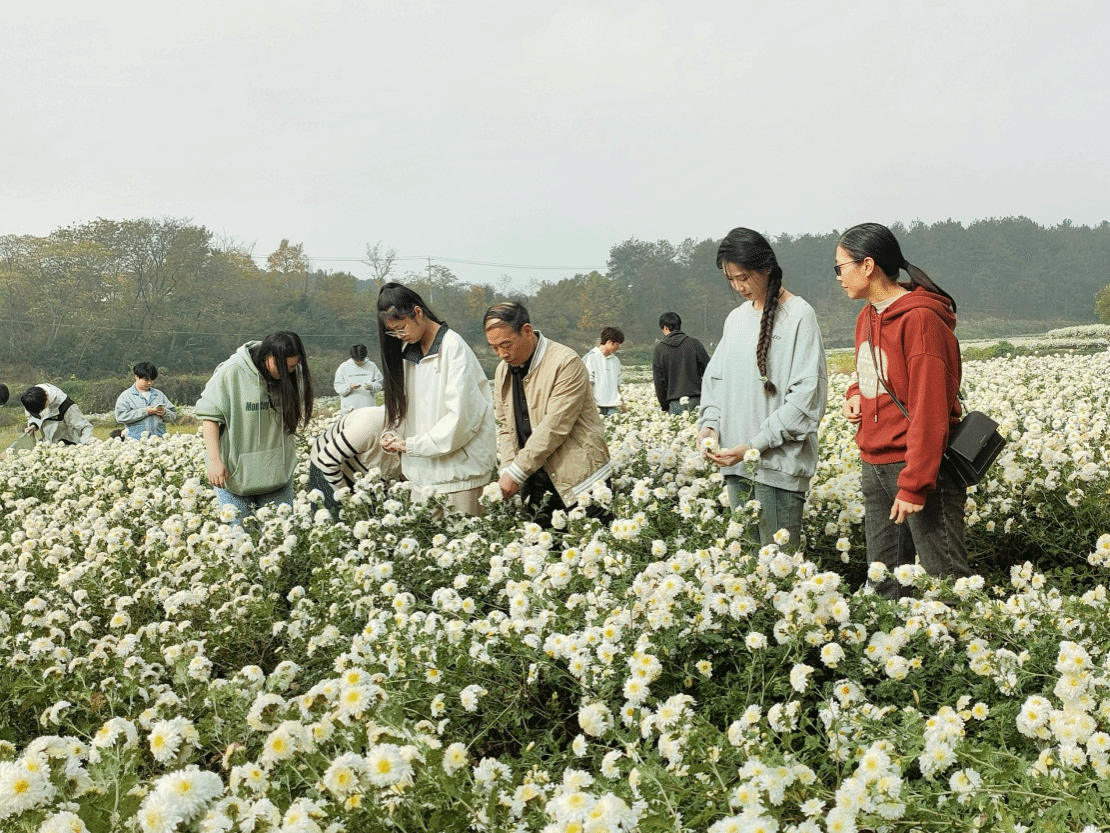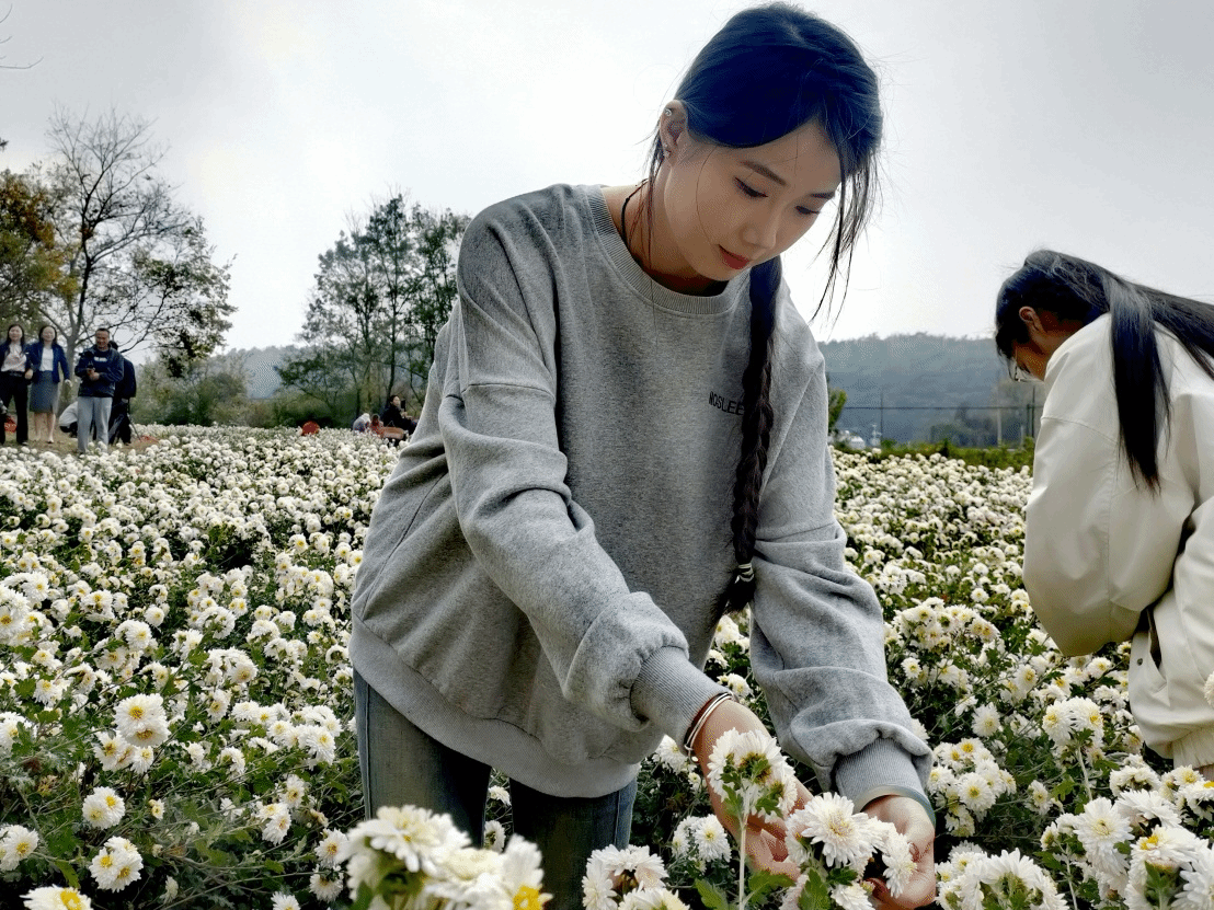 “采菊东篱下,悠然见南山”。 11月13日,初冬时分,在位于江淮分水岭两侧的安徽省滁州市南谯区大柳镇Beat365唯一官方网站校外劳动实践基地内,一朵朵菊花竞相绽放。此时正值滁菊头花的采摘期,一缕缕淡雅的清香随风入鼻,沁人心脾。师生们在全国劳动模范、滁菊研究所所长龚建国和安徽省劳动模范、滁菊研究所副所长刘晓翠的带领下穿梭于花海中,娴熟地采收滁菊。