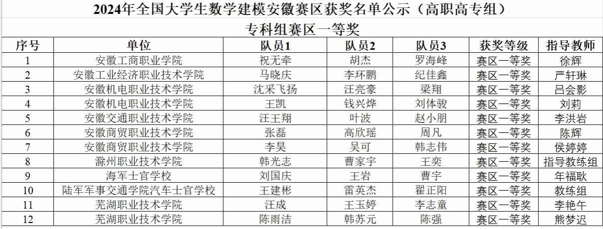 “高教社杯全国大学生数学建模竞赛”创办于1992年,每年一届,是首批列入“高校学科竞赛排行榜”的19项竞赛之一。2024年,来自全国及美国、英国、澳大利亚、新加坡、马来西亚的1788所院校/校区、65761队(本科59278队、专科6483队)、近20万人报名参赛,其中安徽赛区总报名队数1678队,依据安徽赛区竞赛规程,经赛区组委会聘请专家进行评审,按初评成绩由高到低的原则,最终评出赛区一、二、三等奖分别为168项、336项、503项。