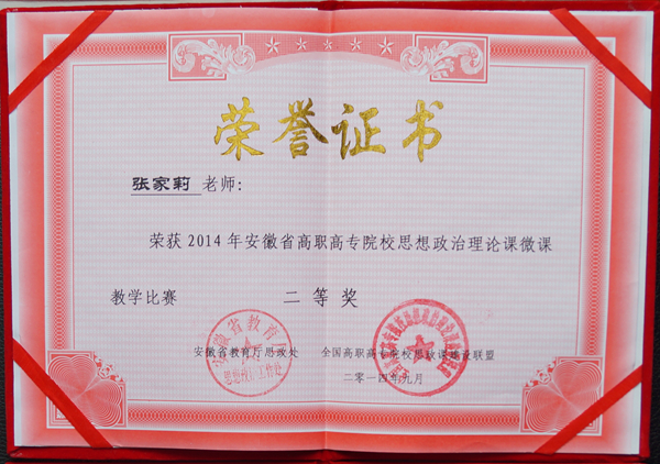 在今年7月至9月开展的安徽省高职院校思政理论课微课比赛中,我院思政部张家莉、李爱红老师分别获得二等奖、三等奖。这是继张家莉、汪立超老师在全国思政征文获奖后的又一喜讯!