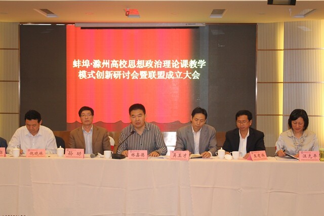 10月12日,蚌埠·滁州高校思政课建设联盟成立大会暨思政课教学模式创新研讨会在安徽财经大学召开,省教育厅思政处处长林鑫德出席会议并讲话。来自蚌埠和滁州地区的12所高校思政部负责人,淮南高校思政课联盟代表,安财大党委宣传部和学生处负责人、思政部负责人、思政部教师代表和各学院辅导员代表共计70余人参加了此次会议。我院思政部王冬主任应邀参加联盟成立大会。
