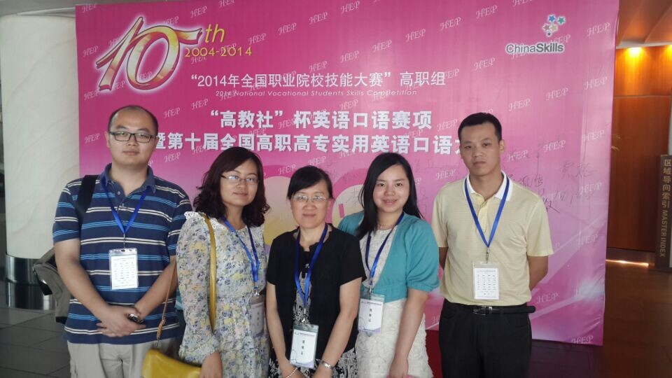 6月18日至20日,基础部英语教研室周婕老师等一行5人赴合肥观摩2014年全国职业院校技能大赛高职组“高教杯”英语口语赛项全国总决赛,来自全国各地的64名大学生代表就英语口语进行了激烈角逐,同台竞技,各展风采。赛程为期三天。其中,18日全天进行“职场描述”、“情景交流”环节半决赛;19日上午进行“职场考验”环节半决赛;20日上午进行决赛。本赛项由教育部等主办,省教育厅和省水利厅承办,安徽水利水电职业技术学院等单位协办。比赛原则由全国各省市自治区分别选派2名选手参赛,全程要求英语作答。全国职业院校技能大赛是由教育部发起,联合国务院有关部门、行业和地方举办的全国性职业院校学生竞赛活动,是中国职业教育学生切磋技能、展示风采的舞台,也是总览中国职业教育发展水平的一个窗口。经过多年发展,已成为全国职教界的年度盛会。大赛的题目和职场语言应用息息相关,也为我们今后的外语教学指明了方向。19日下午一行5人还赴安徽水利水电职业技术学院观摩学习,了解了办学历史,软硬件设施及周边环境,参观了学院报告厅、体育馆及学生食堂等。