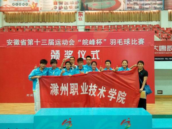 5月17日—23日,安徽省第十三届运动会高校部羽毛球比赛在安庆市潜山县体育馆展开激烈争夺。来自全省本专科共37支高校代表队,300多名运动员同场竞技。我院羽毛球队在基础部王电海、沈连梅两位老师的率领下,奋力拼搏,最终荣获乙组女子团体金牌、女子单打金牌、女子双打银牌、男子单打银牌,男子团体铜牌等优异成绩,为我院争创省内一流做出了积极贡献。