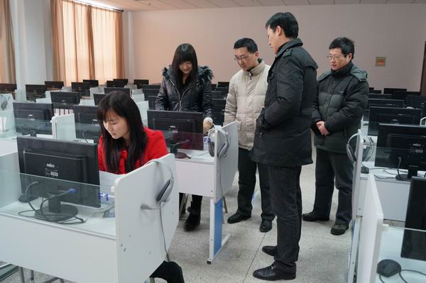 基础部积极落实《关于建立全省职业院校技能大赛制度的意见》(教职成〔2009〕9号),强化技能大赛管理工作,在2013年12月成立了实用英语口语技能大赛实训组和督导组,积极加强学生口语技能训练和管理。开学伊始,2月21日星期五下午,基础部技能大赛督导组组长王冬主任,副组长洪山主任到实训场地,加强对技能大赛的督导,鼓励参赛学生,积极备战,他们希望同学们全身心投入训练,并预祝同学们在比赛中取得优异成绩,并希望指导老师在后续培训工作中加强训练,提高整体水平,指导优秀选手参加省级乃至冲击国家级的大赛。
