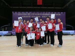 5月10-12日,由教育部中国教育发展战略学会终身教育委员会支持、国际运动舞蹈联盟IDSU主办,滁州学院、滁州市舞蹈协会承办的2013“柔和•种子酒”杯全国学生运动舞蹈大赛华东分区赛在滁州市新体育馆隆重举行。来自华东六省一市的1580多名运动员参加了健美操、拉丁舞、东方舞、民族舞等多个项目的角逐。我院健美操队13名队员(汽车系李硕,信息工程系蒯萍婷,技师学院王海红、尹董琦,机电工程系翟瑞晨、董定邦,生化工程系孙波、陆巧珍,经贸贸易系陈敏、崇玉莲,土木工程系马先彤、赵靓、樊婷婷)参加了健美操大专院校组多个单项的比赛。运动员们经过顽强拼搏,荣获了四金两银的佳绩。同时,通过对赛场内外的综合评定,我院被组委会评为“优秀组织单位”。参赛队员们纷纷表示,通过与来自省内外其他高校队伍的比赛,开阔了队员的视野,增长了见识,同时也发现了我们自身存在的一些不足,明确了今后的努力方向。此次比赛展示了我院体育课程改革和学生课余体育锻炼的成果。