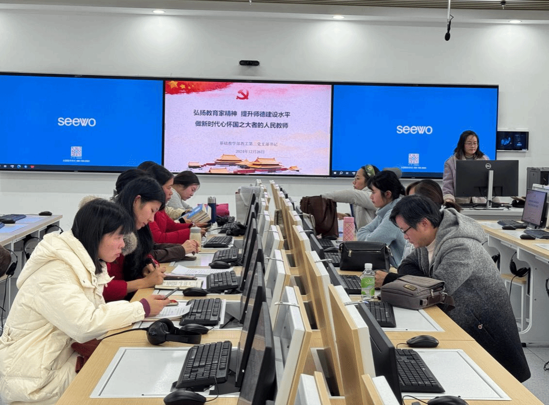 为全面加强党的建设,提升党员教师素质,引导广大党员教师坚定理想信念,明确责任使命,12月26日下午,基础教学部教工二支部在综合楼201开展以“弘扬教育家精神 提升师德建设水平—— 做新时代心怀‘国之大者’的人民教师”为主题的支部书记上党课活动。支部书记冯香丽主讲,二支部全体党员同志参加。
