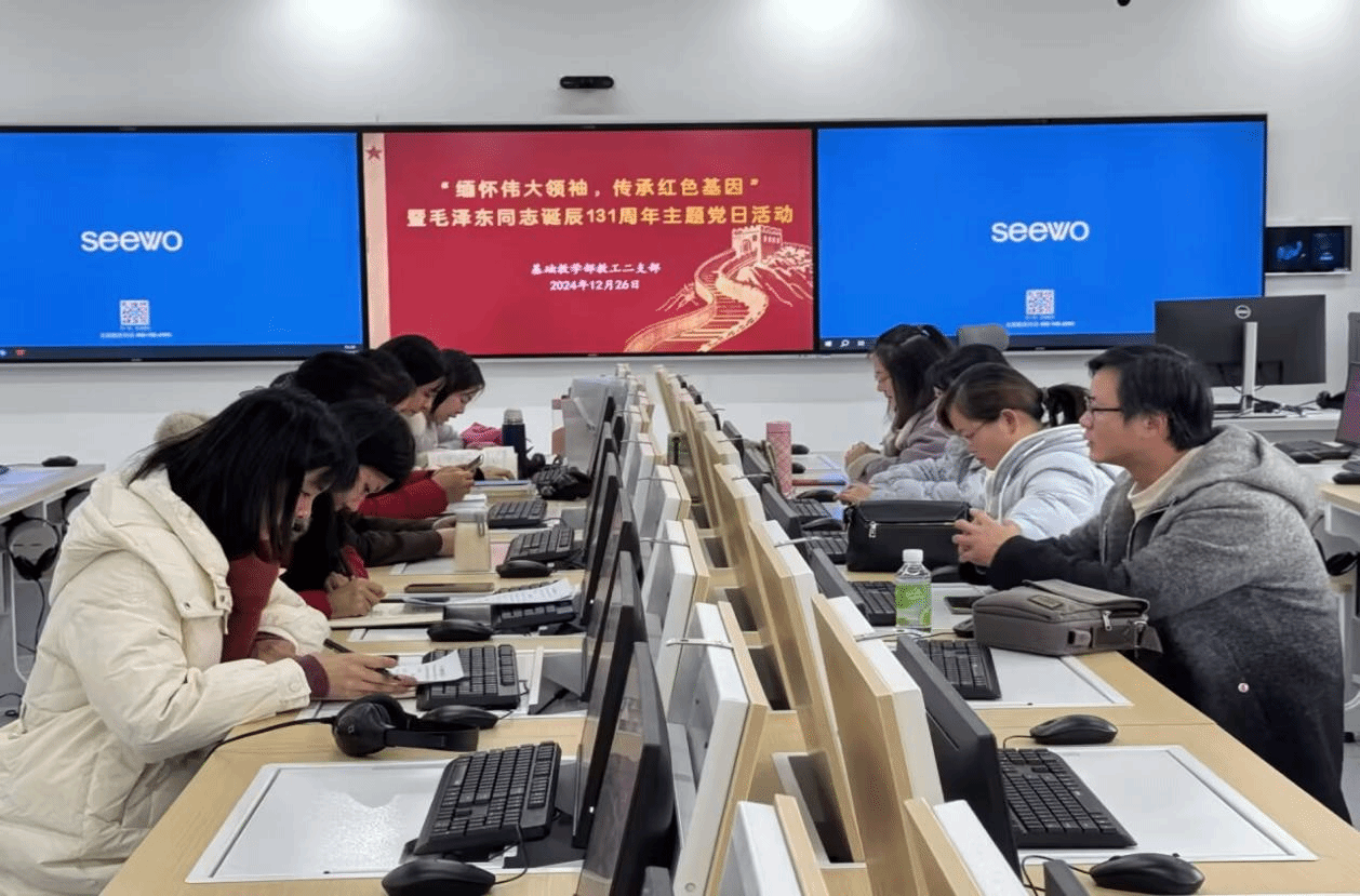 为深入贯彻落实习近平新时代中国特色社会主义思想,扎实做好党员经常性教育工作,坚定党员的政治信仰,12月26日,基础教学部教工二支部于综合楼201开展以“缅怀伟大领袖,传承红色基因”为主题,纪念毛泽东同志诞辰131周年主题党日活动。此次活动由二支部书记冯香丽主持,支部全体党员教师参加活动。