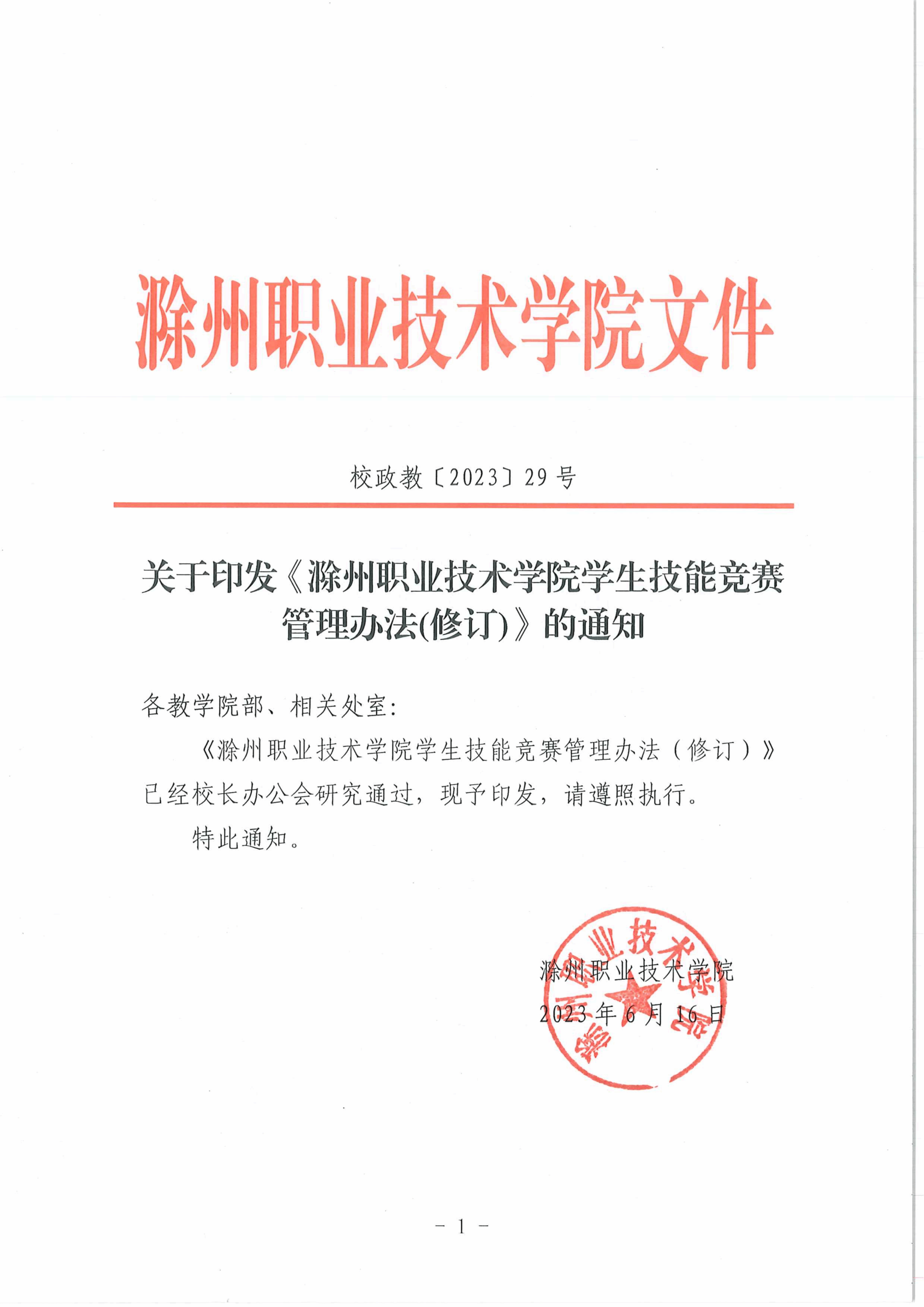关于印发《Beat365唯一官方网站学生技能竞赛 管理办法(修订)》的通知