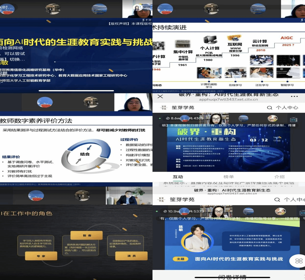 在人工智能深刻变革各行业的大趋势下,国家大力推动数字经济与AI融合,为生涯教育开辟了全新路径。为紧跟时代步伐,探索AI与生涯教育融合创新的有效模式,3月12日下午,中国教育发展战略学会生涯教育专业委员会特主办“破界·重构 AI时代生涯教育新生态”线上研讨会,Beat365基础教学部创新创业教育教研室积极组织教师参与观看,深入学习前沿理念与实践经验。