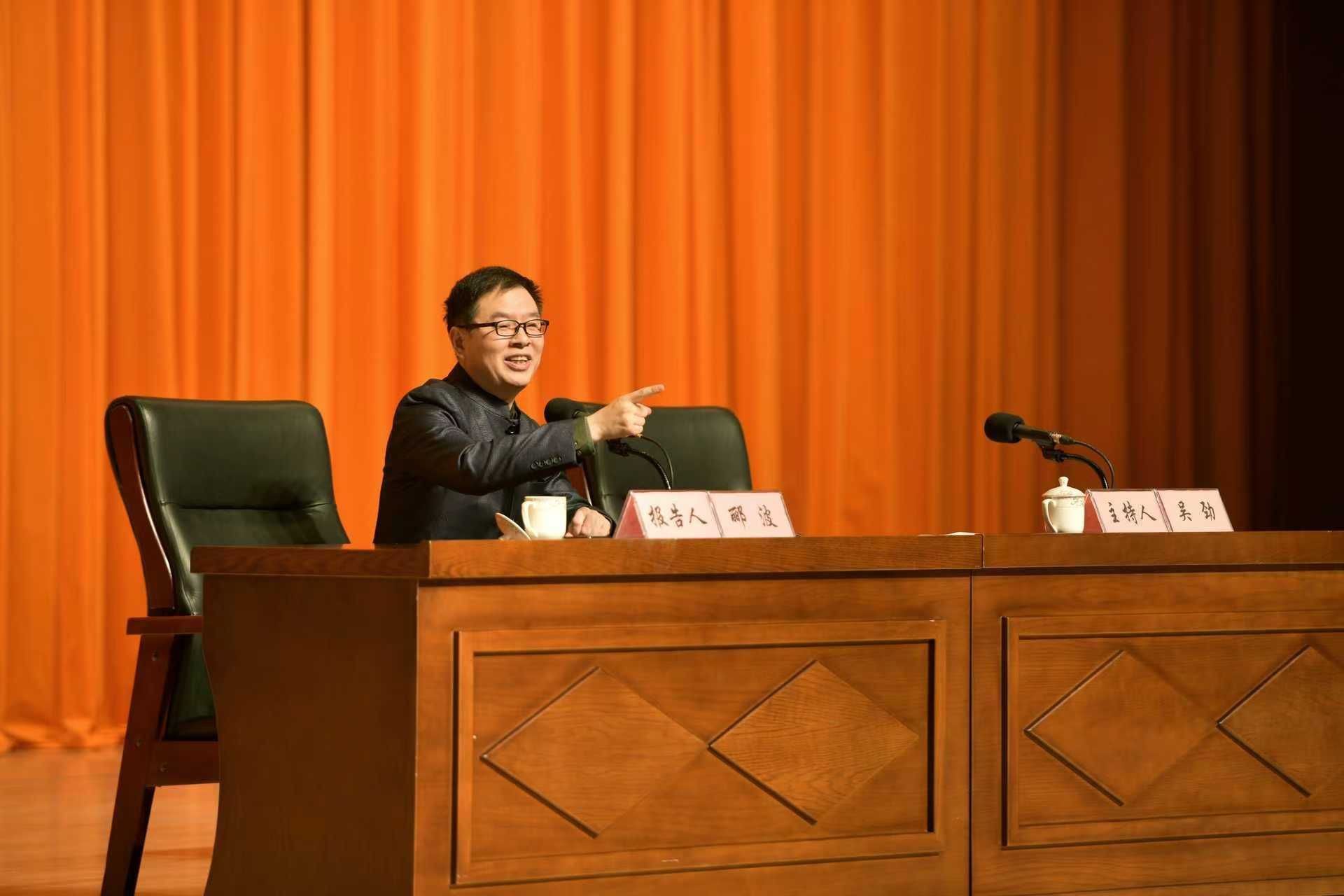 11 月 19 日下午,滁州大讲堂在滁州大剧院开讲,此次活动是滁州市第二届阳明文化活动周系列活动之一。特邀南京师范大学教授、江苏地域文化研究会会长郦波教授围绕“王阳明与滁州”作专题学术报告,市委书记吴劲主持本次活动。基础教学部教师代表参加了这场精彩的学术文化盛宴。