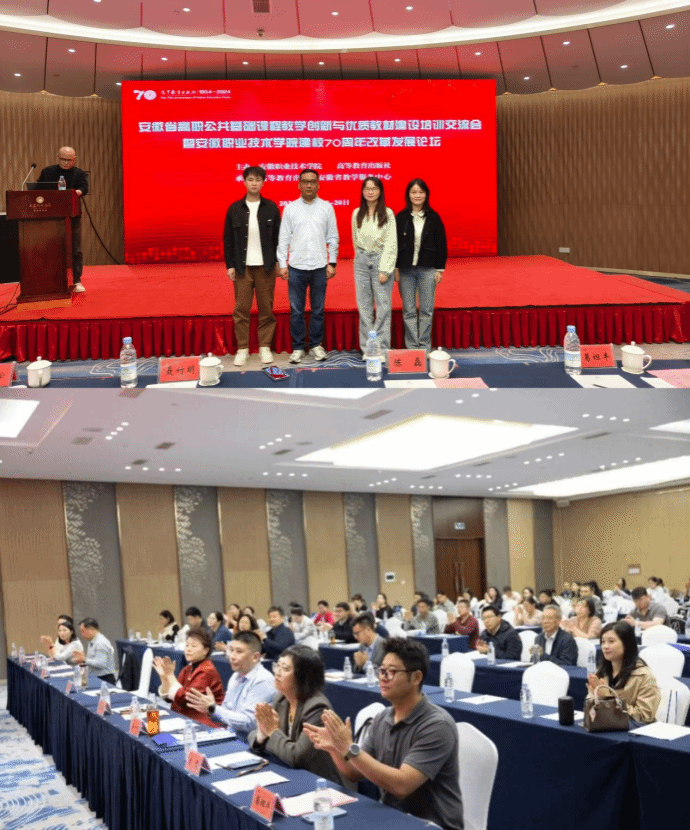 为提升基础教学部公共课教师教学能力和教材建设水平,推动Beat365职业教育高质量发展,10月19日至20日,基础教学部创新创业教研室、劳动教育教研室、数理教研室等四名教师赴合肥参加安徽省高职公共基础课程教学创新与优质教材建设培训交流会暨安徽职业技术学院建校70周年改革发展论坛,会议由安徽职业技术学院与高等教育出版社主办。