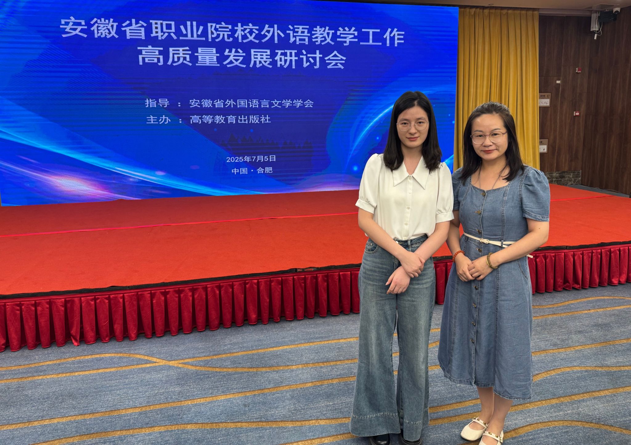 7月5日,安徽省职业院校外语教学工作高质量发展研讨会在合肥举行。会议由安徽省外国语言文学学会指导,全省高职院校外语教师代表参会,围绕教学创新、教师发展及技能竞赛等核心议题,共谋职业教育外语教学改革新路径。基础教学部外语教研室教师冯香丽、乔萍萍参会。