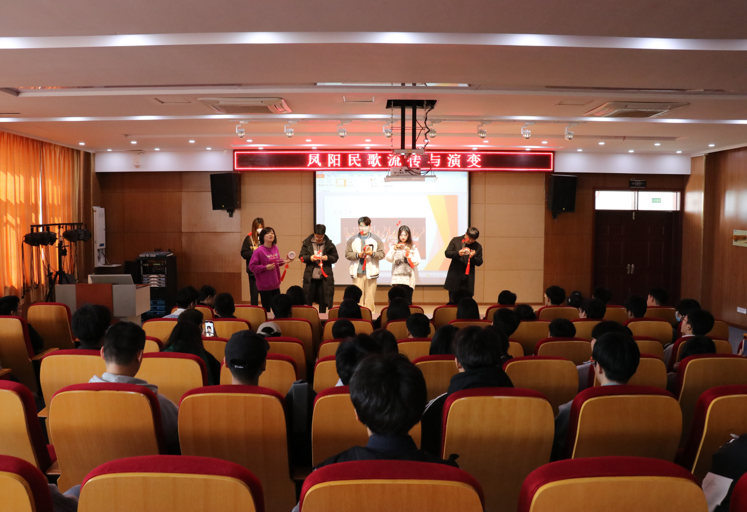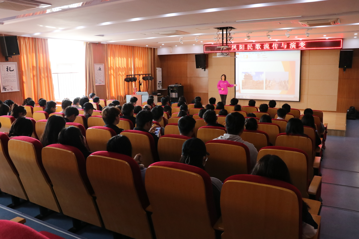 11月26日中午12:30,基础部在南阶203教室举办“凤阳民歌流传与演变”讲座,来自学校的音乐爱好者、广播站、合唱团及部分教师聆听了此次讲座,讲座由人文素养教研室副教授王蓓蓓主讲。