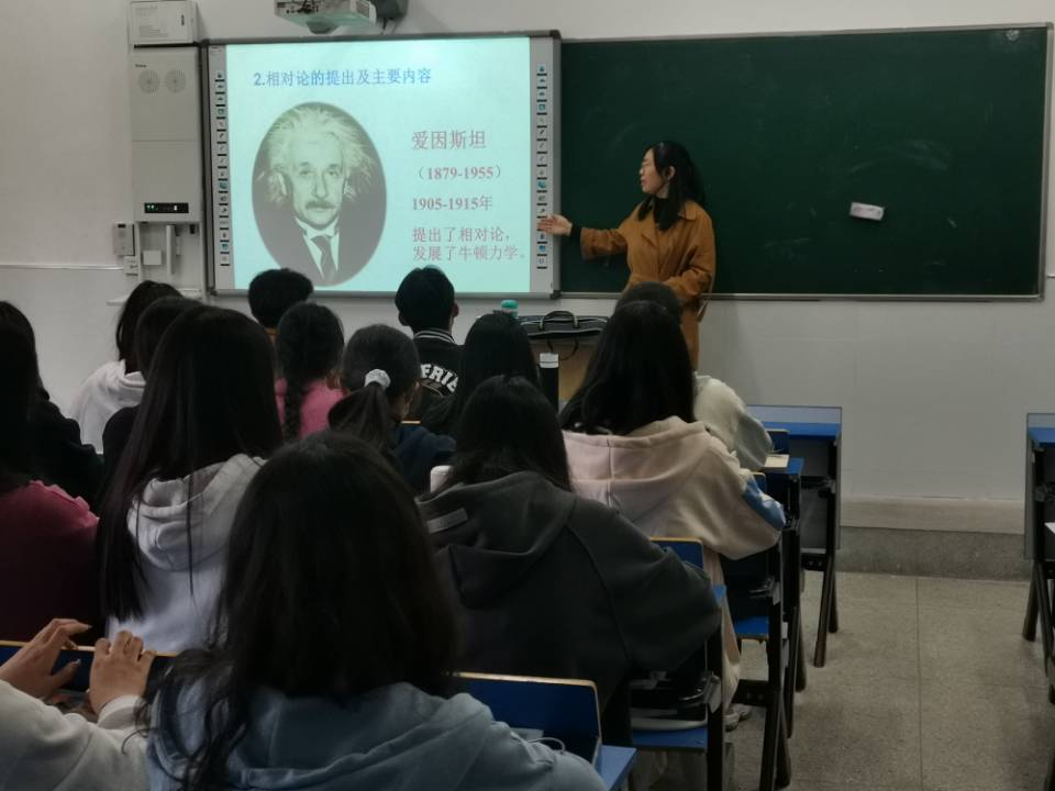 2022年11月2日下午,基础教学部梁金荣老师在1214教室举办了“解读相对论”的学术讲座。全校对物理学感兴趣的同学聆听了此次讲座。